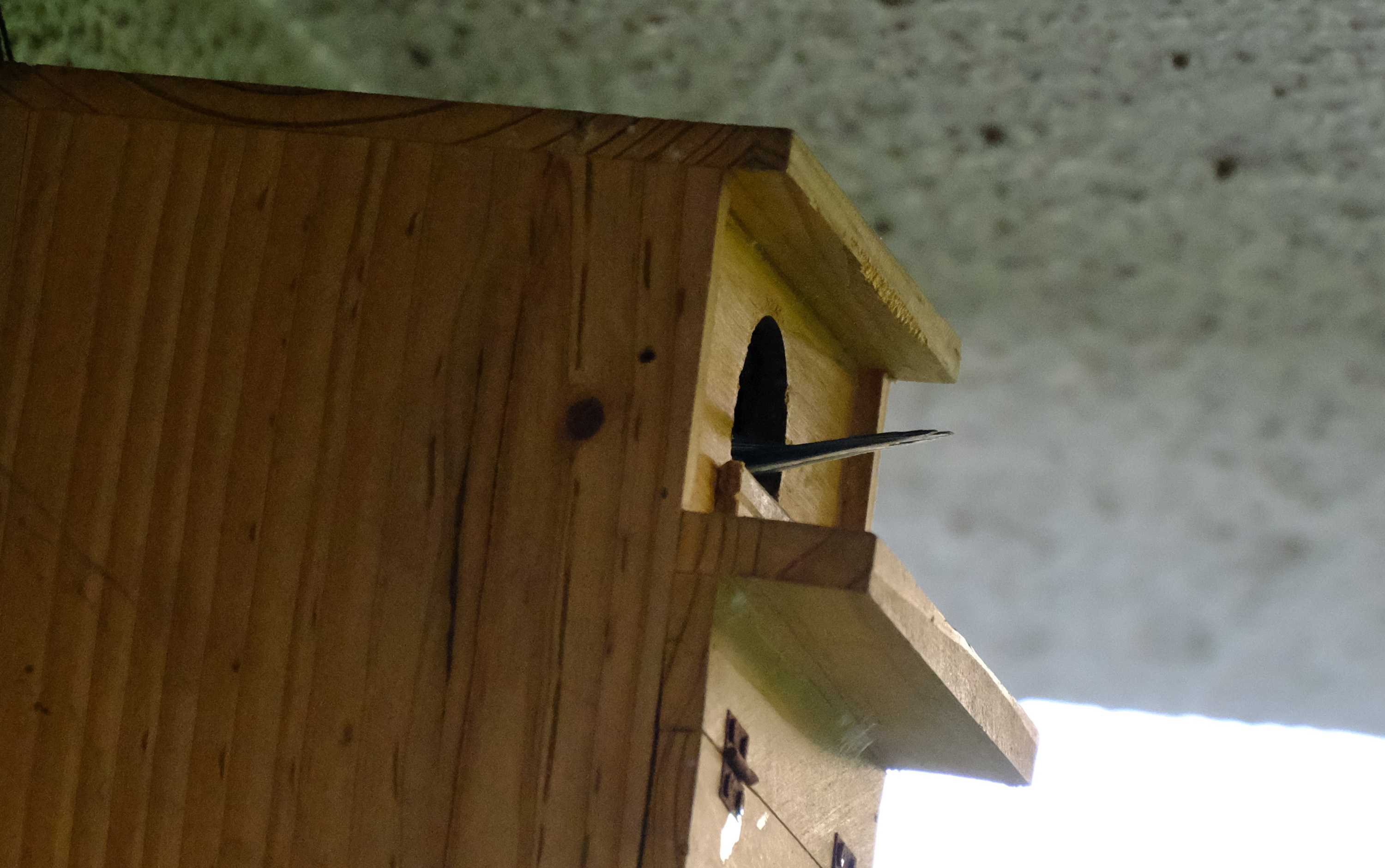 ヒナが小さければ親は完全に巣箱の中に入ってしまうので、尾羽が見えているということはヒナがかなり大きくなってきているということでしょう。