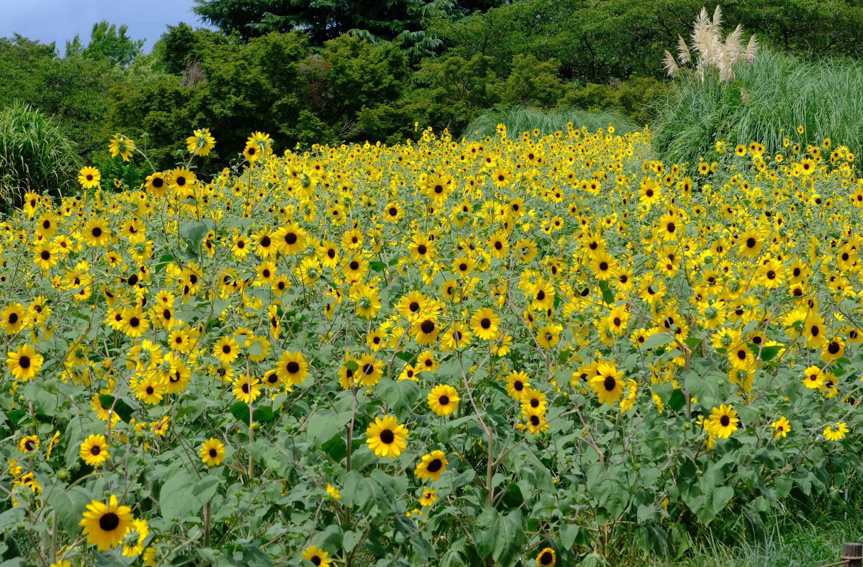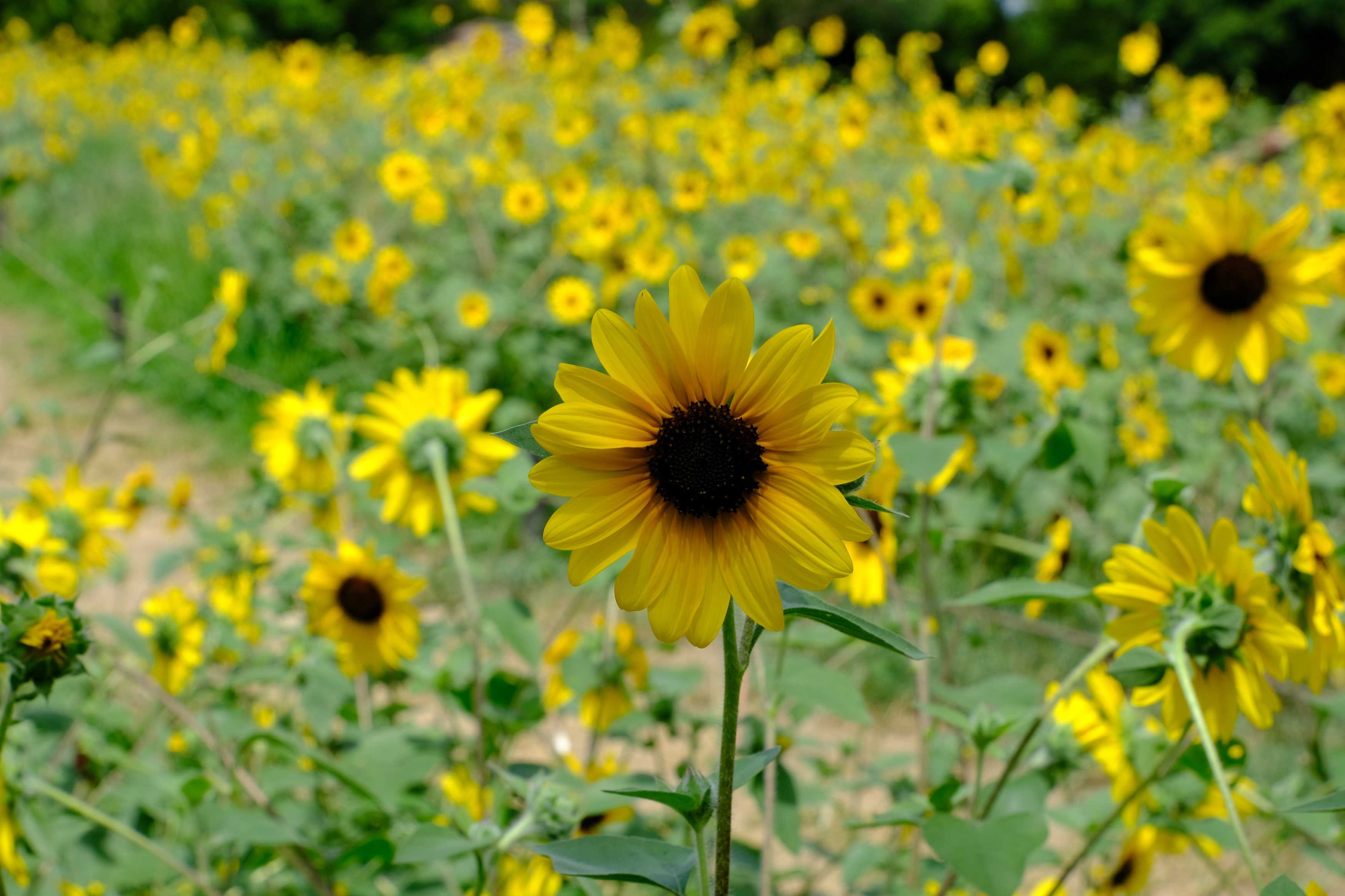 ハーブの丘にはたくさんのサンフィニティが植えられていました。