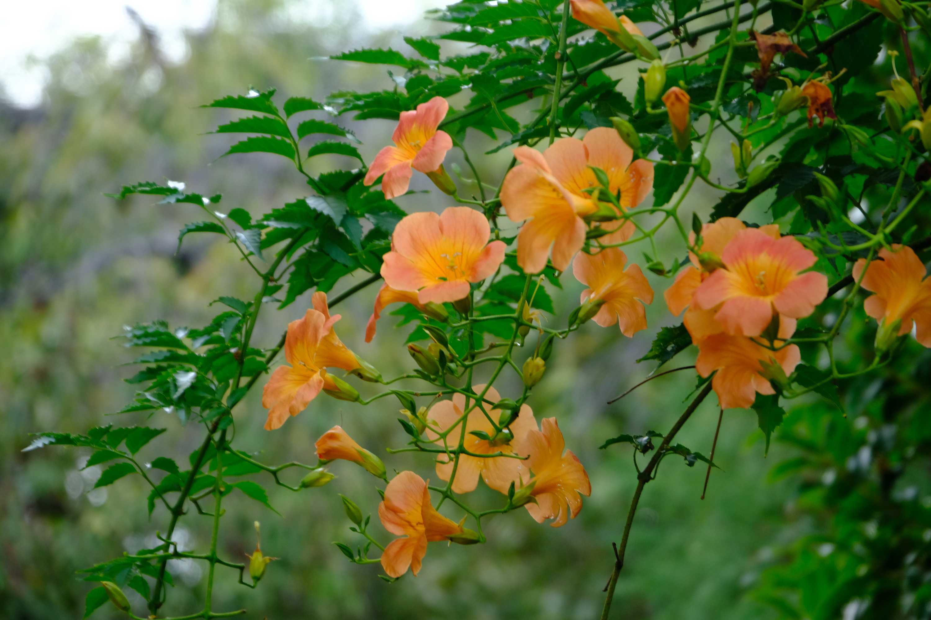 我が家の凌霄花(ノウゼンカズラ)はとっくに終わっていますが、ご近所にはまだまだ咲いているところがありました。