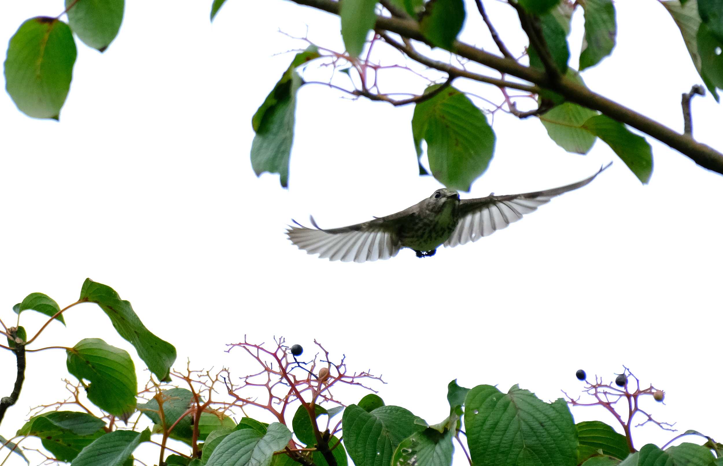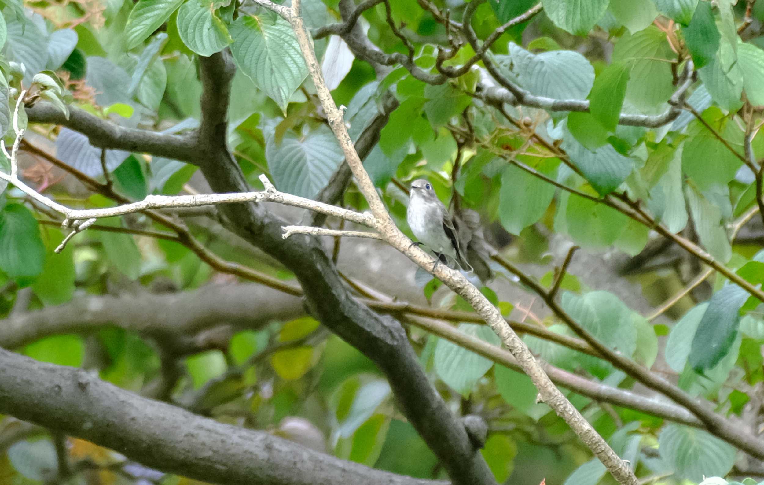 ちらっと見えたおなかには縦斑があるので、エゾビタキのようでした。