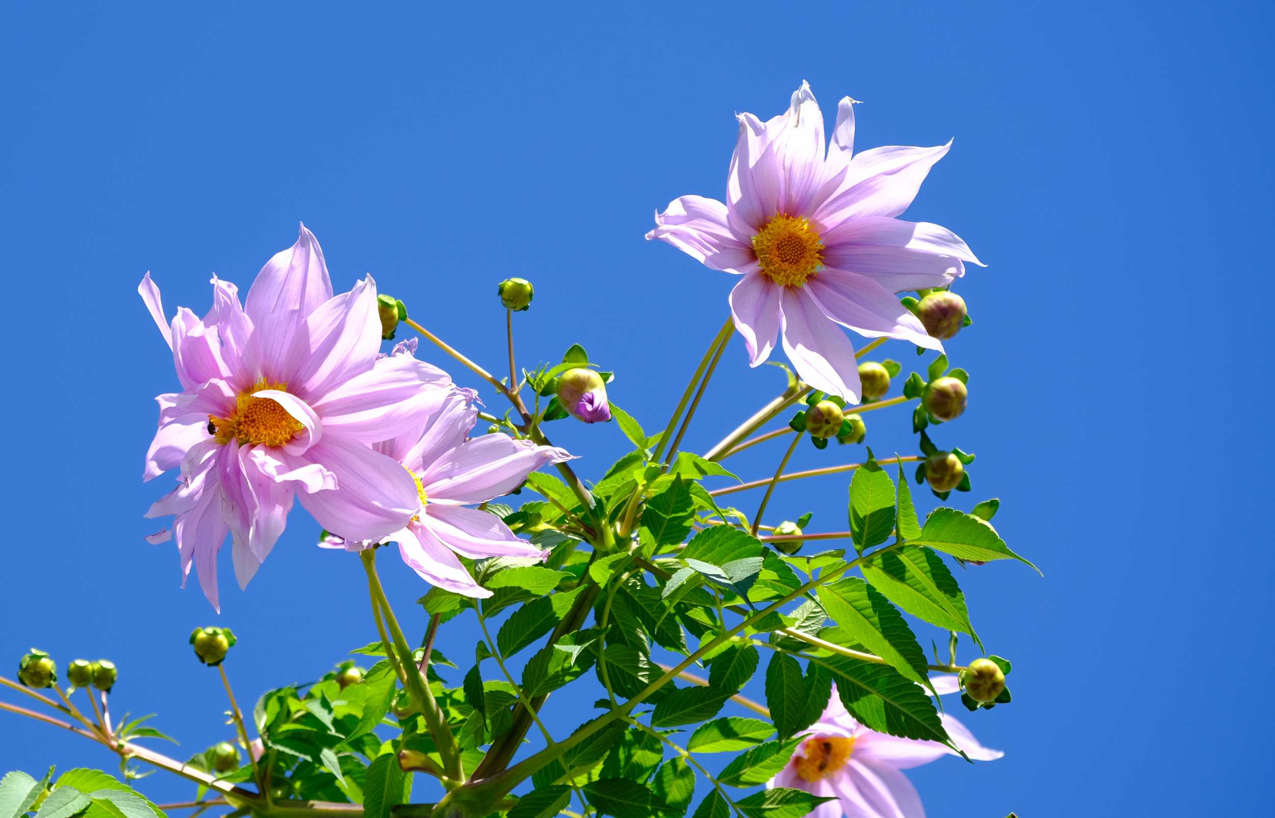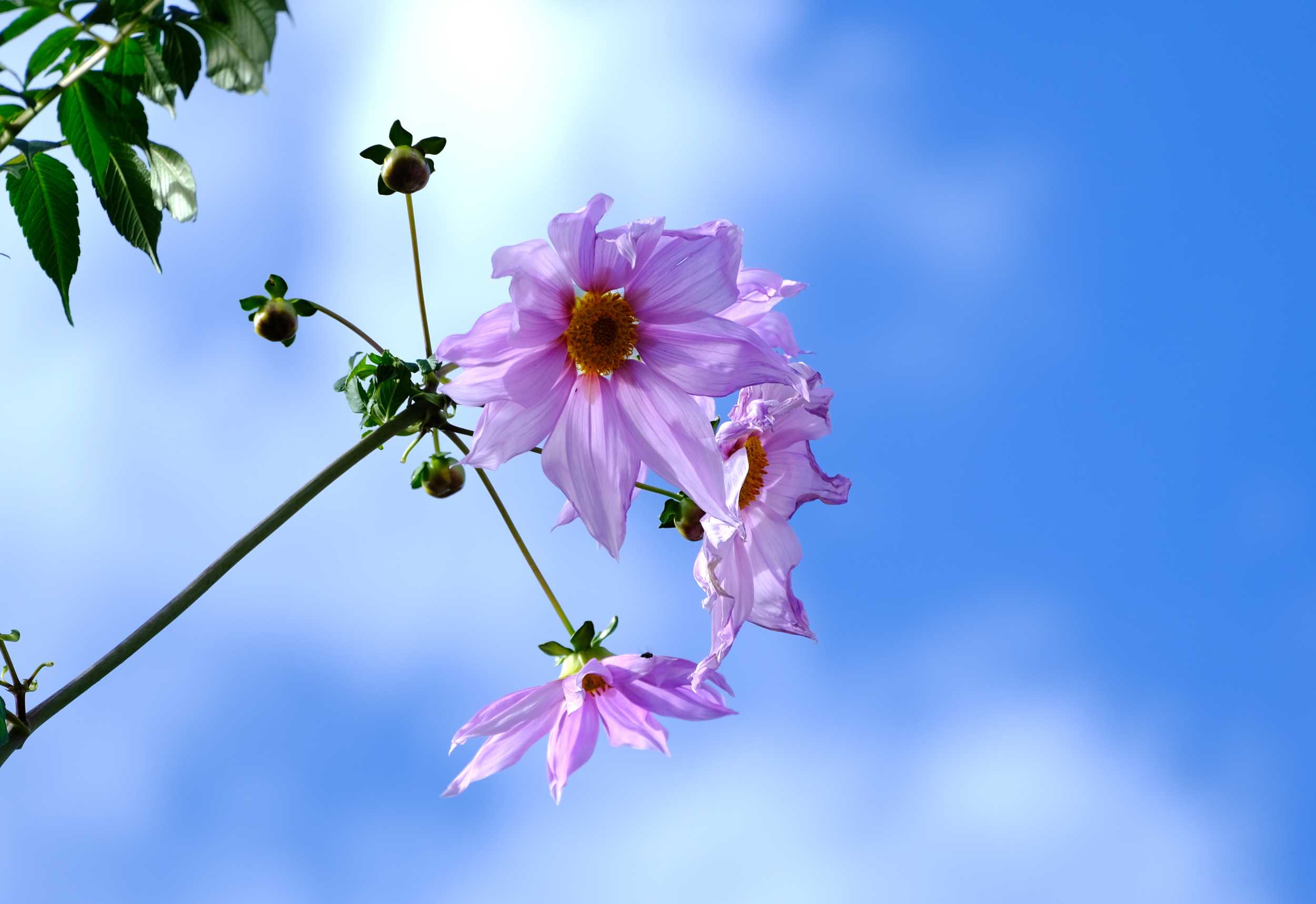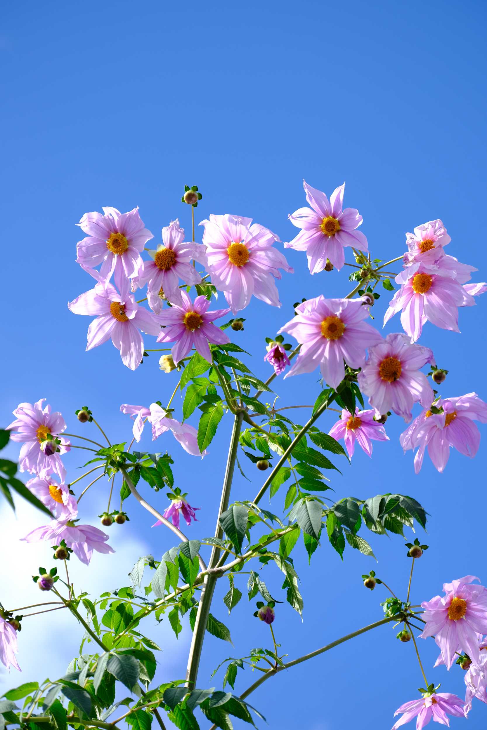 以前、曇りの日に見た皇帝ダリアでしたが、満足がいかず青空の日にリベンジしました。