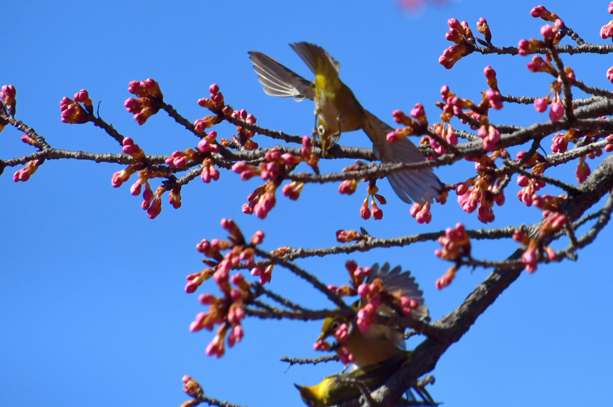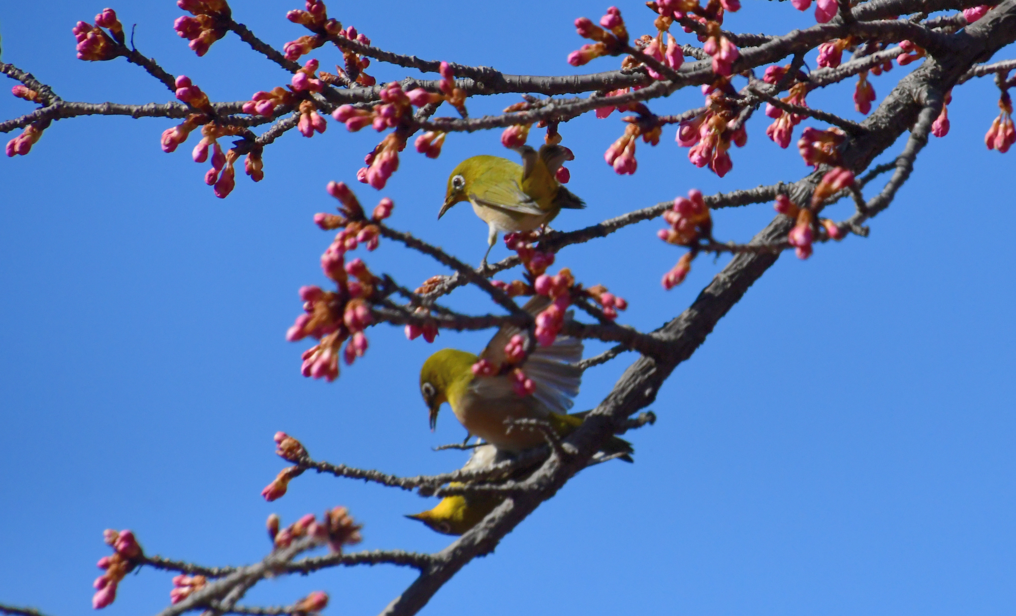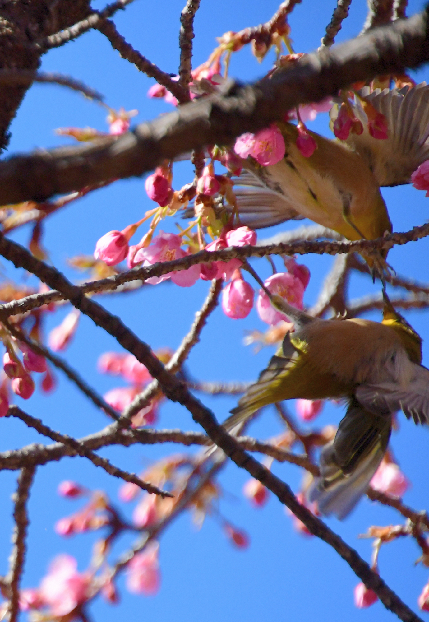 河津桜を優雅に愛でるのではなく、メジロのバトルをひたすら追いかけて終わりました。('◇')ゞ