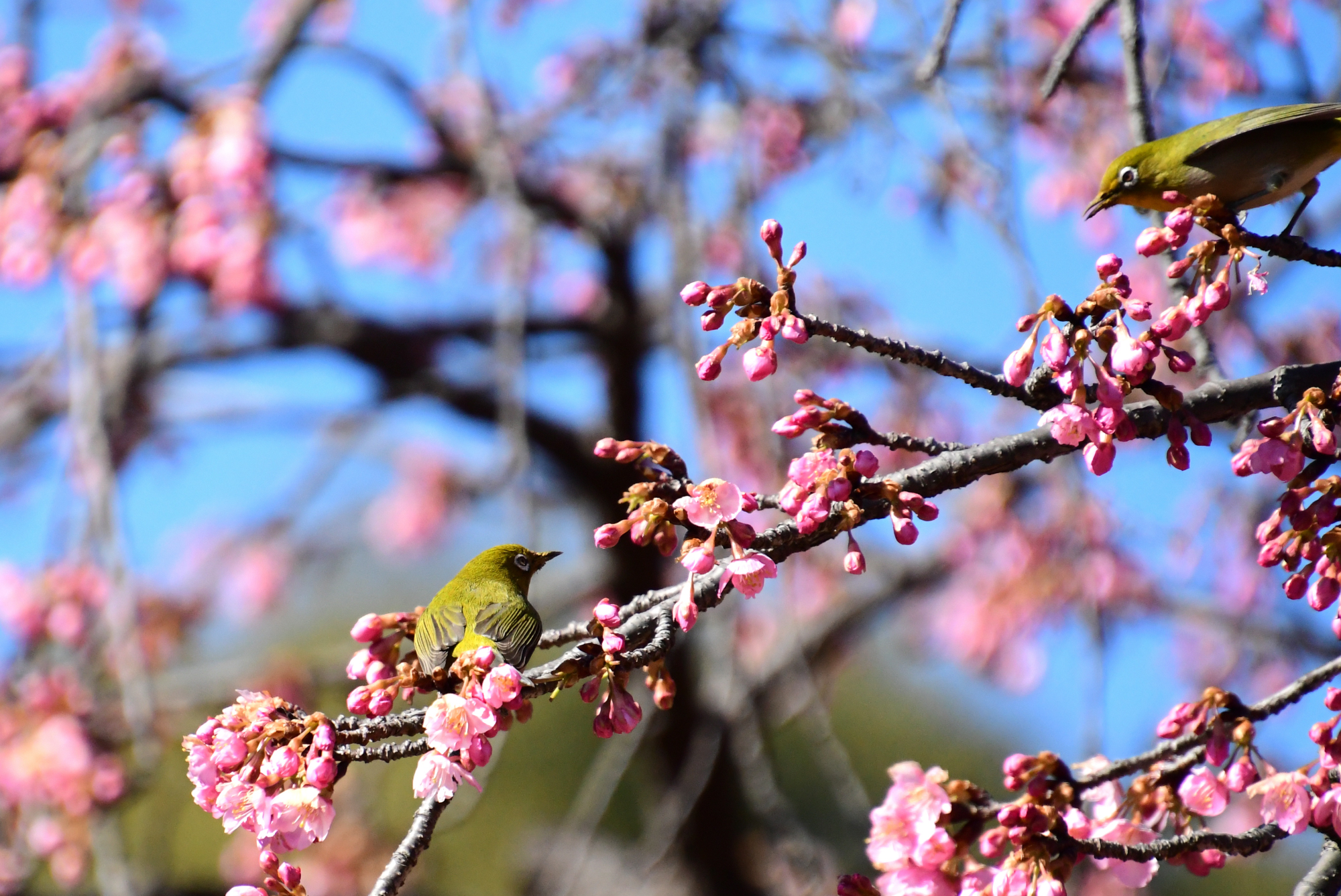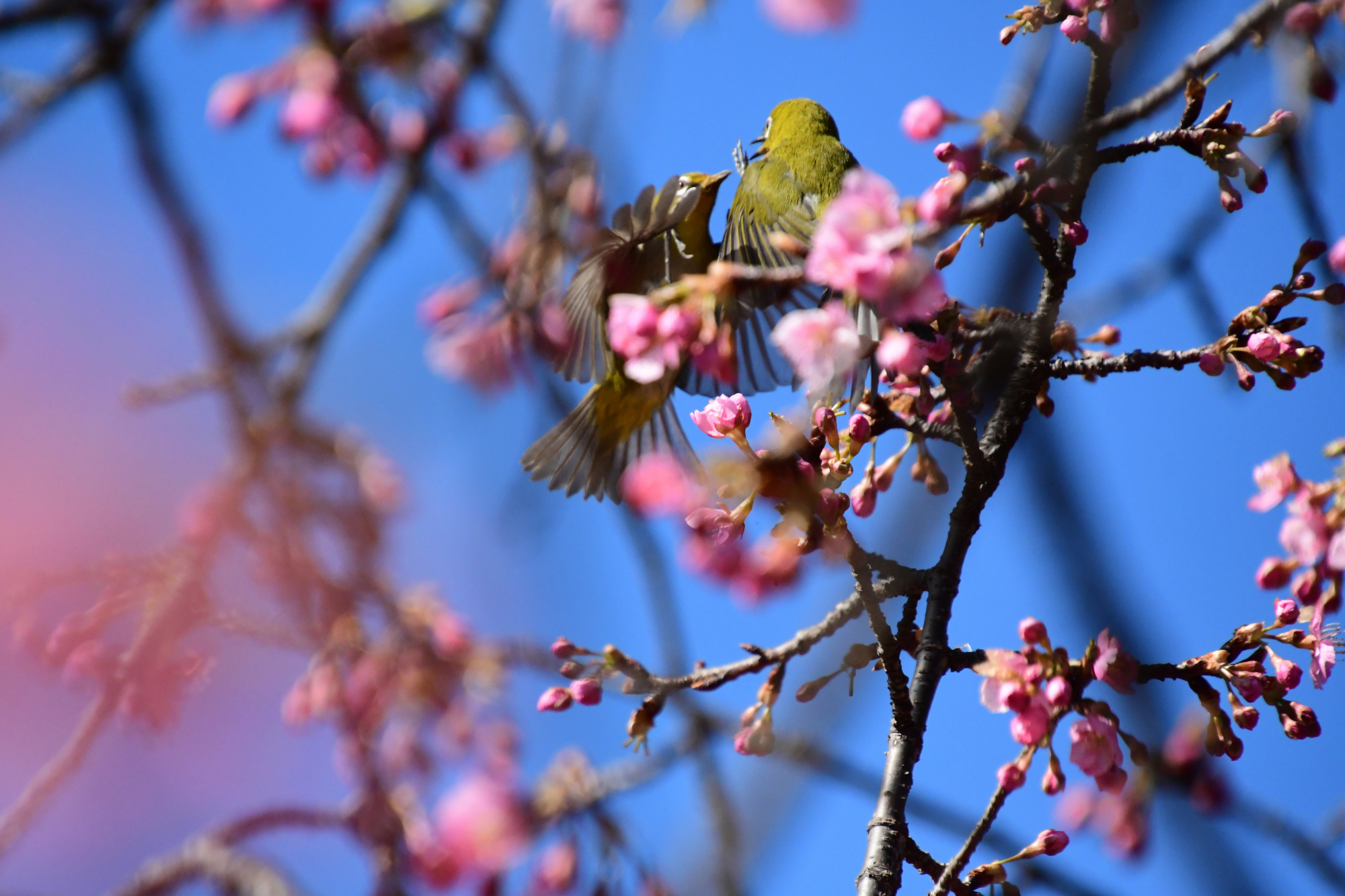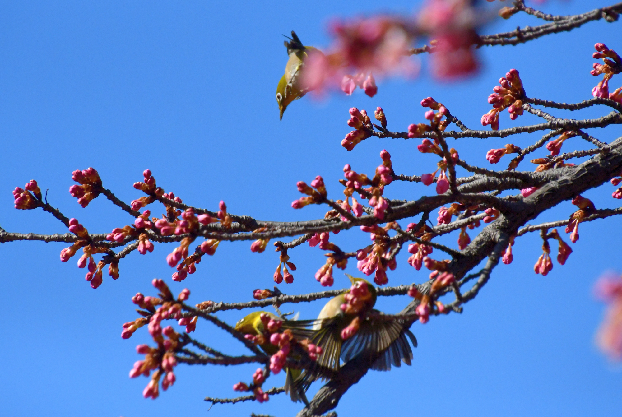 河津桜を優雅に愛でるのではなく、メジロのバトルをひたすら追いかけて終わりました。('◇')ゞ