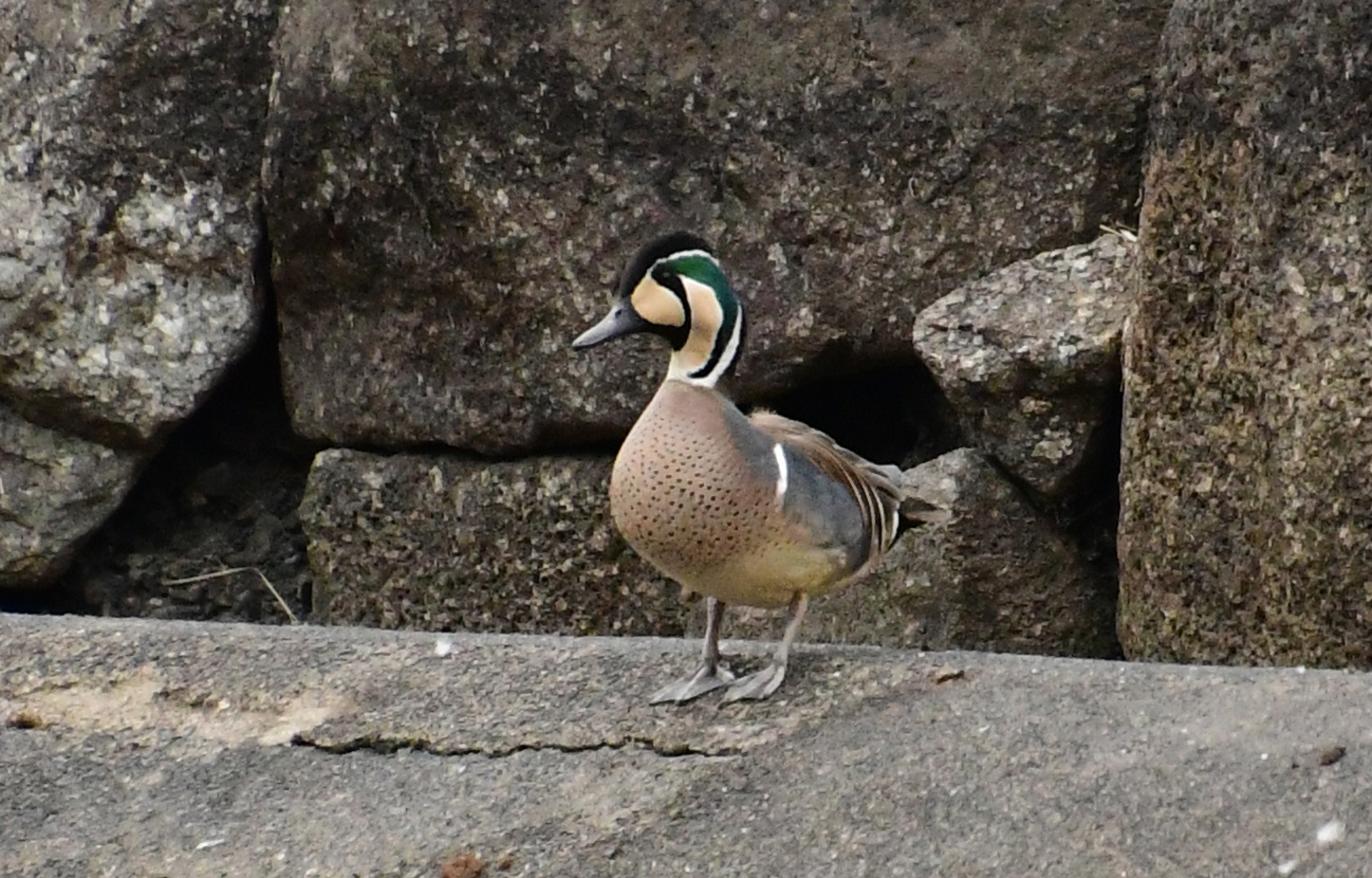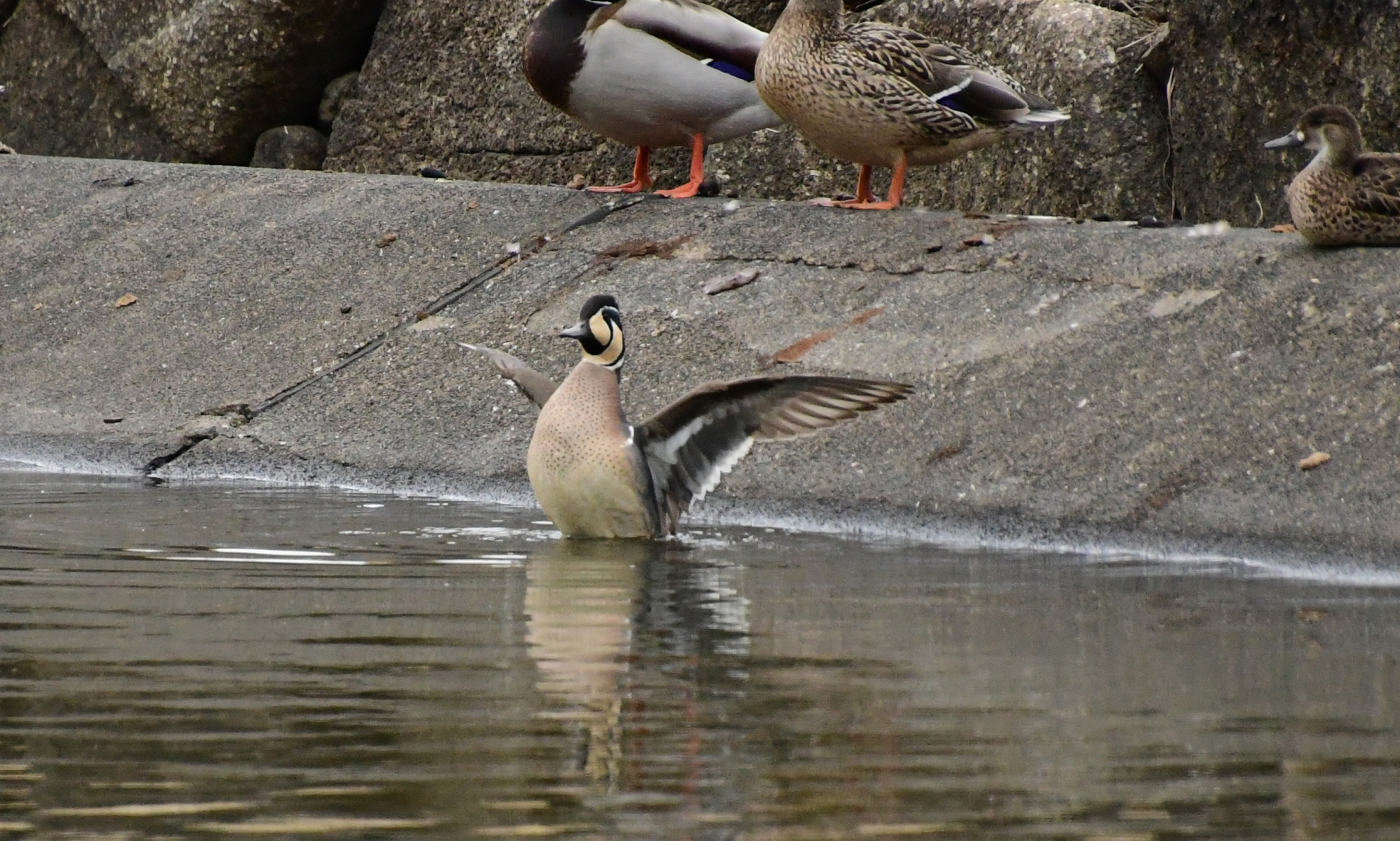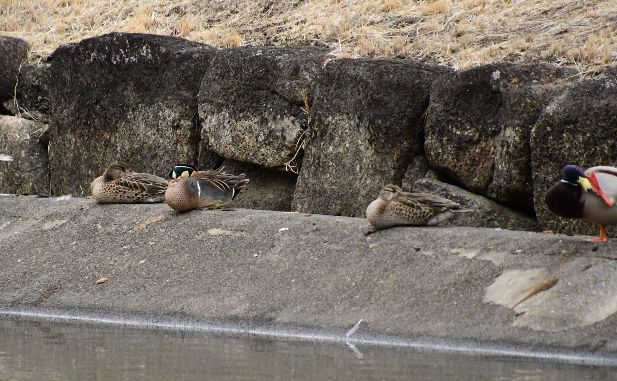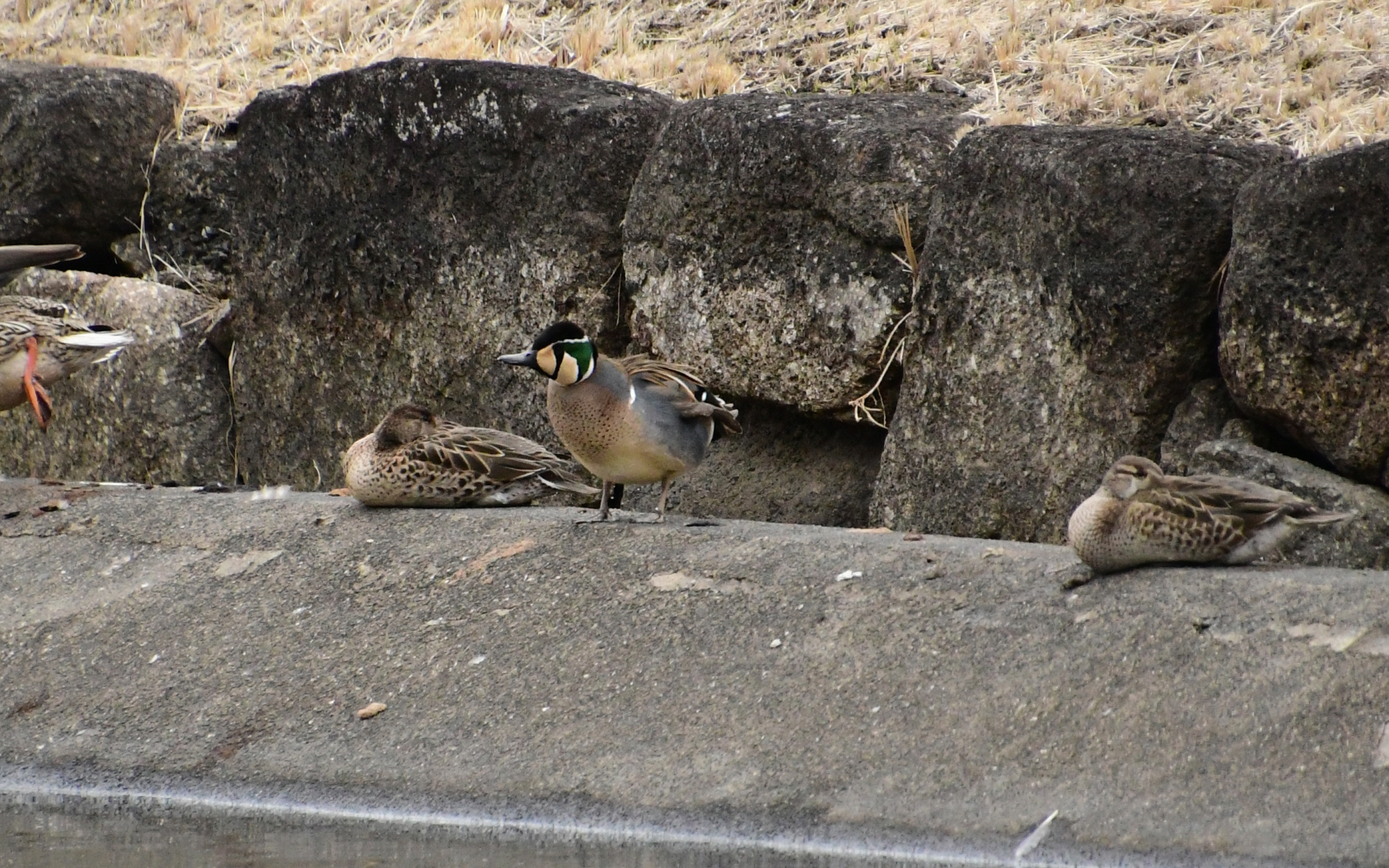 隣で寝ていた(たぶん)通称マルガモさん(マガモとカルガモの交雑)を誘ってみました。