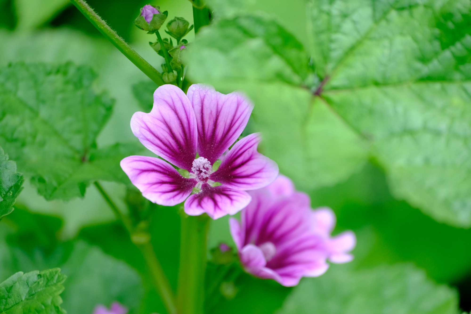 タチアオイがてっぺんまで咲くと梅雨明けすると言われています。