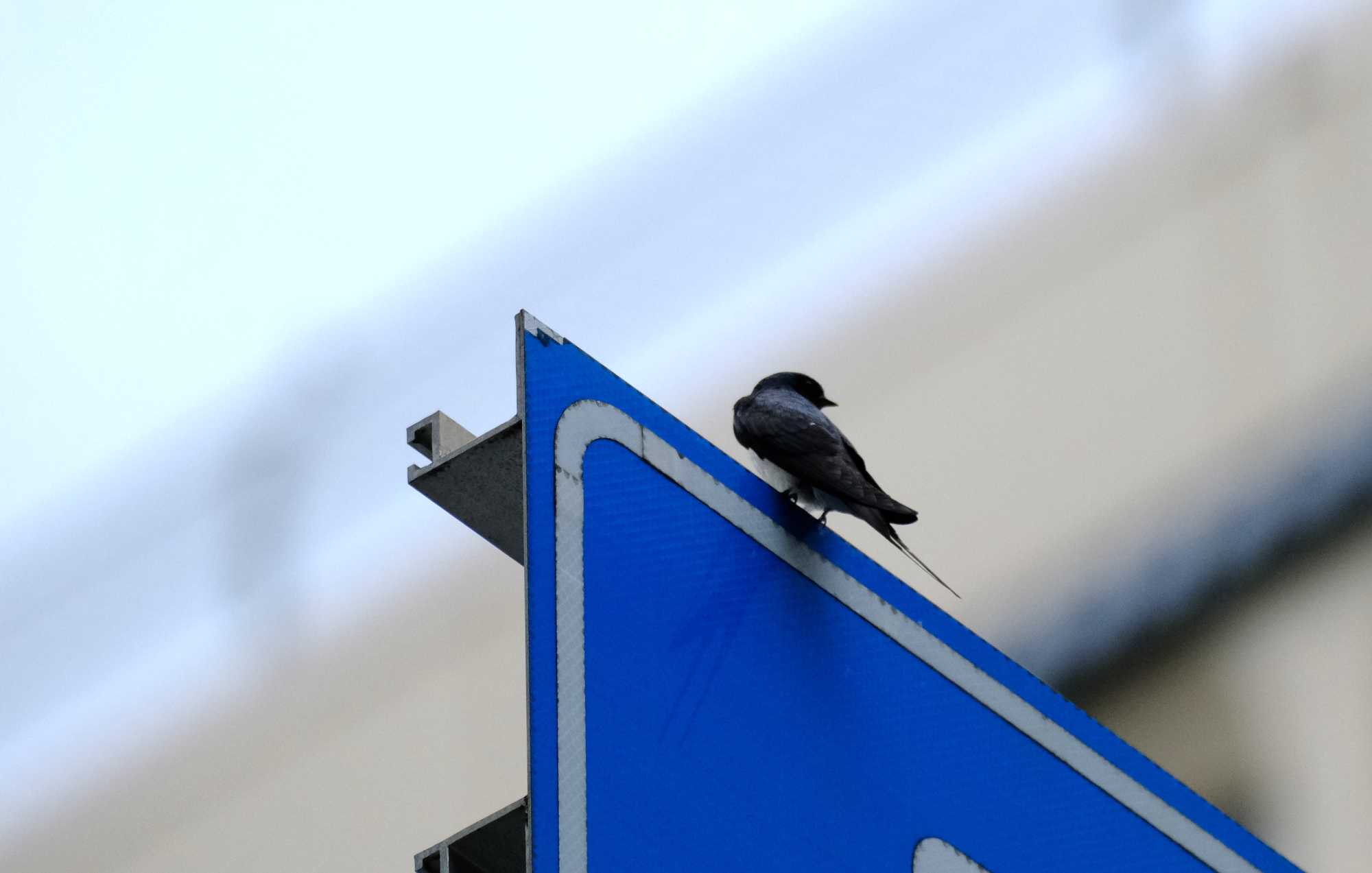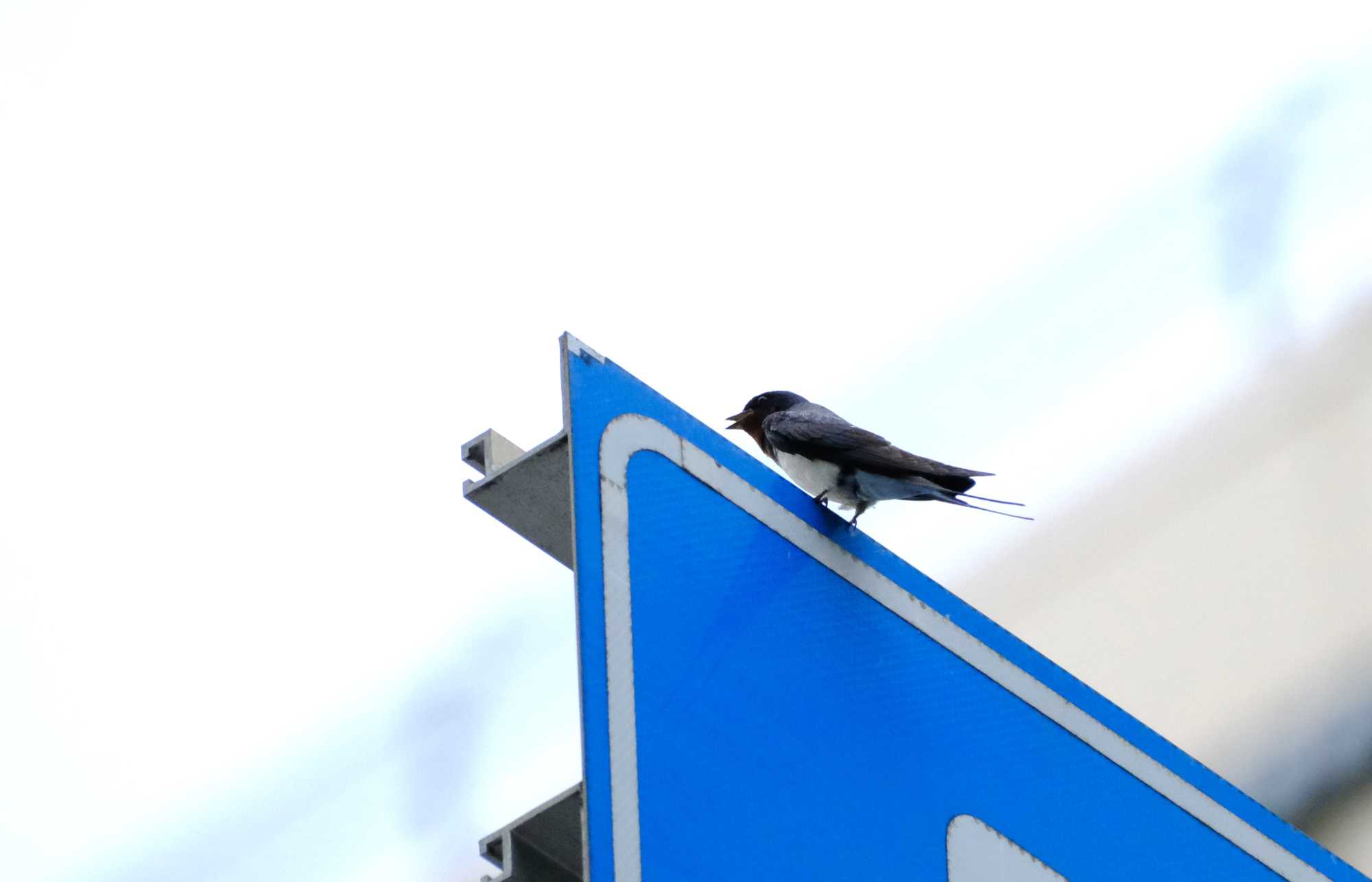 さきほどのオスは大きな案内標識の上に止まりました。