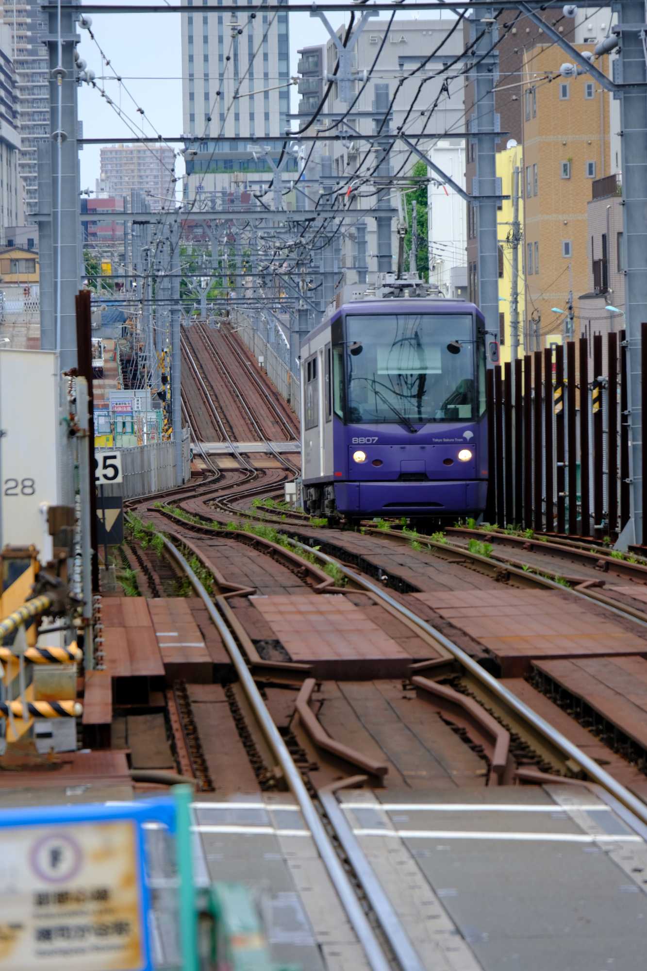 三ノ輪橋方面行の青いのがこちらに来ますよ。