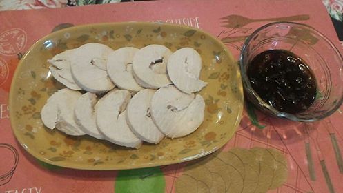 鶏ハム作りました~。ゆず茶ソースを添えて。
