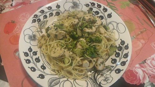 先日作った鶏ハムで「鶏ハムとブロッコリーのペペロンチーノ」