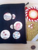 お待たせしましたm(^^;)m今まで内緒にしていた、『な・い・しょ♪』は・・・手作りキットで~す♪詳しくは、こちら携帯から、ご覧の方は、http://photo.www.infoseek.co.jp/AlbumPage.asp?key=1521262&un=132900&m=2&s=0↑こちらから、見て下さいね(写真も見れます♪)ほんとにお待たせした割には、?(ーー;)って、感じかも?(^^;)すみません横のフリーページにも「手作りキット☆」載せてます。初心者向けのキットです。・ペタンこバッグ1は、型紙入ってません(すぐに作れるようにカット済みです)生成りは裏表が分かりにくいので、本体の裏に、水溶性のチャコペンで、印をつけてます。・ハーフパンツ(今回は110・120サイズ)も、型紙は入ってません。カットして、3つ折り以外のとこは、ロックミシンで端ミシン済みです。ポケットの裏側には、接着芯をアイロンでつけてます。・クルミのピンクッション1・2は、作り方のプリントに、型紙を載せてます。全部、作り方のプリント入れてます。どうしても分からない時は、『自宅でフリマ♪』の時にいらしてお尋ね下さいね(^^)!聞くのは、ただですよ~(笑)それでも、分からない時は、『putiお教室♪』に、お申し込み下さいね(^^)『自宅でフリマ♪』の時は、生地やタグ・テープ・リボン等の製作材料もあります。続き・・・☆午前中、リバレインで今日開催されてる、ママの市に行きました。 すごい人で、おしくら饅頭みたいになって、2度ほど押されてこけそうになりました(^^;)偶然、友達に合いました(^^ゞ10分弱くらい見ようと頑張ったんですが、疲れてスープセット友達と食べて、あきらめて帰りました(^^;)人の間から少~し見えた様子では、リネン系や木工系や、和風のバッグやコサージュなどが、ありました。お土産に、会場で販売されてた餅吉のおせんべい買って帰りました(^^ゞ帰って来て、ミシンかけしてます。製作に集中したいので、今週いっぱい日記はお休みします。メッセージとメールは、時々確認するつもりです(^^)では、皆さん、また来週(^^)/~