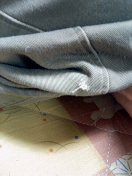 昨夜、hpの日記を書いた後、ゲージから出してもらって、遊んでいたら・・・うさpapaのズボンをクンクンしてちょっと、なめてる・・と、思ってたら、 やってくれました!噛んだ後、分かります?(^^;)これで、合計うさpapa2本・私1本・・・計3本穴あけられました昼間の、爪きりに連れて行った仕返しですね(^^;)お昼頃、大分で大きな地震があったみたいですね。うちのとこは震度2~3くらいだったみたいなんですが、分からなかったです・・・どうか、地震があったところの皆さんに被害がありませんように☆今日の夕食☆・かしわご飯(人参・鶏肉)・茹でたブロッコリー&分葱(わけぎ)・土筆の卵とじ・チンした里芋(皮付きのまま、チンしてからむきました)※酢味噌を添えました。