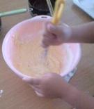 今朝のお天気は、昨日は、姪っ子と『putiお教室(お菓子版)』しましたブルーベリーマフィンですマーガリン・砂糖・卵・小麦粉・牛乳入れて、混ぜてます↑ 混ぜた生地を、スプーンでカップに入れてます↑庭のを冷凍しておいたブルーベーリーで、事前に使う分だけのジャムを作っておきました。オーブンで焼く間、昼食(おそば)にしてブルーベリーマフィンの完成で~すクッキーは、何度か経験のあった、姪っ子(年長)もケーキは初めてだったので真剣そのもの計量と焼くのは、手伝いましたが、後は、自分でやりました。口は出しましたが、手は最低限にしてました。片付けも、流しにいろいろ運んだり、布巾で拭いたり、頑張りました「出来立ては、おいしいね~」と、うさっこと3人で試食しました。その後、うさっこが小さい頃作った、あいうえおタペストリーや童謡フェルト絵本・布絵本を使って遊びました。童謡フェルト絵本が、一番好評でした作品の、写真は、またの機会に・・姪っ子のお迎えまでもう少し時間があったので、庭のハーブとを摘んで、小さなガラスのビンに入れて、『ミニ生け花』しました。ハーブの香りが気に入ったみたいで、なんどもクンクンしてましたその後、試験勉強の合間で降りてきた、うさっこと広告紙で飛行機を折って、とばしたりハギレと、ヒモととセロテープを使って、アートな?作品作ってましたお迎えになっても、ちょっと帰りたくなかったみたいですあの後、たぶん姪っ子パパとママは、マフィンの作り方講習を聞かされたと思います