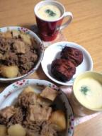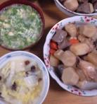 今日のお天気は、時々今日の夕食☆・肉じゃが(牛肉、糸こんにゃく、ジャガイモ、高野豆腐)・茶碗蒸し(手羽もと、卵、ブロッコリー、かにかま)・がんもどき(鳥飼豆腐の)※手羽もとの骨は、出汁をとるとき、使いました。身だけ、茶碗蒸しに入れました。チェルシーのジュースです。チェルシーだって味です