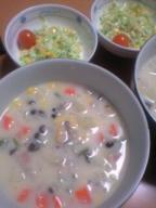 今日のお天気は、秋なのに、黄砂がすごくて、山がほとんど見えなかったです12月から始める『1コイン教室』の準備で、出たり入ったりでした11月19日(金)『自宅でフリマ』開催予定am10:00~pm15:00薄暗くなって、ちょっと玄関の外に出たら門のとこに貼ってる、フリマ開催のプレートを、ママさんらしい方、お二人で見てありました・・ゆっくりしたフリマになるだろうと、思ってますが、意外と忙しかったりして・・お楽しみですね今日の夕食☆・クラムチャウダー(あさり、人参、ジャガイモ、玉ねぎ、庭のピーマン、しめじ、コンソメ、牛乳、小麦粉、庭のローリエ、粒コーン)・粒コーン入りコールスローサラダ(庭のプチトマト添えました)