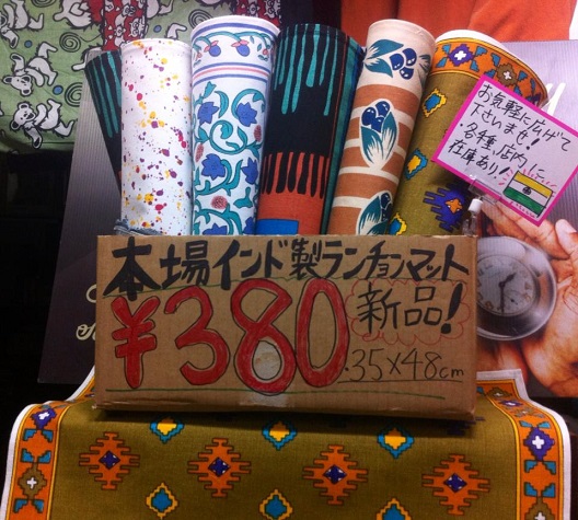 食事時にテーブルの上に敷くランチョンマット。これがあれば、こぼしてもテーブルクロスやテーブルを汚さずに済むし、何よりも見た目が鮮やかで、食事の時間が一層楽しくなるアイテム!そんなランチョンマット。本場インド製、綿100%の品が、当店にて大量入荷!種類は全部で5パターン!サイズは46×34cmという手頃なサイズです。味わい深いインド製にも関わらず価格はなんと!一枚380円!各種、在庫は多数ございますので、家族みんなの分を揃える、なんてことも出来ます!もちろん食卓以外にも、家具や花瓶の下に敷いたり、それこそカーペットのように使ったり、その用途は無限大!家をよりオシャレでコダワリを持たせるコチラのランチョンマット。店舗はもちろん、Yahooオークションでも絶賛販売中です!ぜひお気軽にご覧くださいませ!★Aタイプ(ジャクソン・ポロック風 前衛アート柄)http://page16.auctions.yahoo.co.jp/jp/auction/u72066949★Bタイプ(インド 絨毯柄)http://page2.auctions.yahoo.co.jp/jp/auction/b166811093★Cタイプ(エスニック ベリー柄)http://page11.auctions.yahoo.co.jp/jp/auction/n137860303★Dタイプ(60's フラワー柄)http://page13.auctions.yahoo.co.jp/jp/auction/r121633340★Eタイプ(当店イチオシ!本格ウェスタン柄)http://page10.auctions.yahoo.co.jp/jp/auction/m132240525★神奈川県藤沢市にある★ロック&ウェスタン古着専門店「US.Blues」オフィシャルブログです。地図、営業時間などはコチラをご覧くださいませ!【楽しさを追求する!「Jerry'sグループ」という組織一覧!】★Jerry's Guitar ( Vintage Guitar Shop ) http://jerrys.zero-city.com/★Jerry's School(音楽教室) http://www.rak2.jp/town/user/undoubu/★Jerry's TV( You Tube ) http://www.youtube.com/user/jerrysmash★Jerry's Watch Company ( Antique Watch Shop )http://plaza.rakuten.co.jp/jwc123/★Jerry's US.BLUES ( Rock & Western Used Clothes ) http://plaza.rakuten.co.jp/usblues/★JERRY'S VINYL COLLECTIONのスタッフブログhttp://blog.goo.ne.jp/usblues1234★Jerry's Bike Station ( Used & Vintage Bike Shop ) http://plaza.rakuten.co.jp/jbstation/そんなグループの代表MASHが贈るハチャメチャ人生を毎日更新するブログ「ハードパンチ・ブルース」 はコチラhttp://blog.goo.ne.jp/12mash