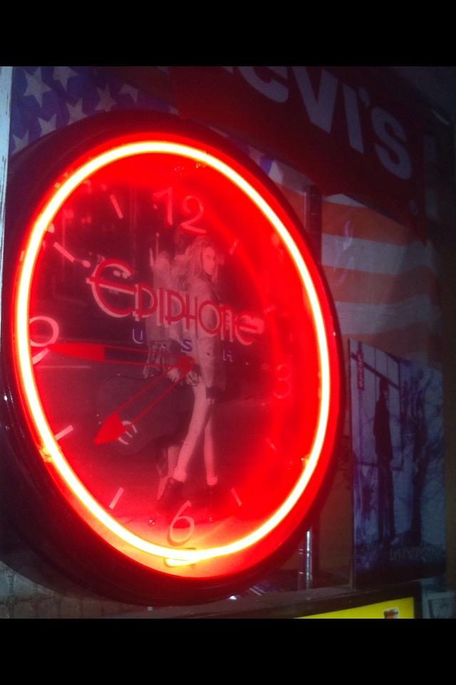 長らく当店で一番目立つ正面で、看板として活躍した「ROUTE 66」のネオン管!この度、老朽化のため思い切って新しい物に変更しました!ビートルズやストーンズも愛用していたアメリカの楽器メーカー「EPIPHONE(エピフォン)」のネオン管&掛け時計!ギターケースを持って、夜の街を歩くカップルの写真を、ムーディなネオン管が包み込む。Jerry's GuitarのMASH師匠から譲り受けたコチラの品。アメリカ文化の象徴「ROUTE 66」から、あえて「エピフォン」に変えたと言うことは!?もちろん!これからはただのロック&ウェスタン古着屋でなく、ミュージシャンとしても、どんどん活動していきますよ!これからは、こちらのネオンが「営業中」の目印となります。どうぞよろしくお願い致します!★神奈川県藤沢市にある★ロック&ウェスタン古着専門店「US.Blues」オフィシャルブログです。地図、営業時間などはコチラをご覧くださいませ!【楽しさを追求する!「Jerry'sグループ」という組織一覧!】★Jerry's Guitar ( Vintage Guitar Shop ) http://jerrys.zero-city.com/★Jerry's School(音楽教室) http://www.rak2.jp/town/user/undoubu/★Jerry's TV( You Tube ) http://www.youtube.com/user/jerrysmash★Jerry's Watch Company ( Antique Watch Shop )http://plaza.rakuten.co.jp/jwc123/★Jerry's US.BLUES ( Rock & Western Used Clothes ) http://plaza.rakuten.co.jp/usblues/★JERRY'S VINYL COLLECTIONのスタッフブログhttp://blog.goo.ne.jp/usblues1234★Jerry's Bike Station ( Used & Vintage Bike Shop ) http://plaza.rakuten.co.jp/jbstation/そんなグループの代表MASHが贈るハチャメチャ人生を毎日更新するブログ「ハードパンチ・ブルース」 はコチラhttp://blog.goo.ne.jp/12mash