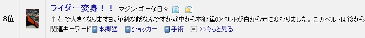 ↑右クリックで大きくなりますヨ。単純な話なんですが途中から本郷猛のベルトが白から赤に変わりました。 このベルトは後からショッカーに再度改造手術を受けたのか それとも進化してこの色がついたっていうのか? この辺を・・・この、なんて言うのかなぁ?謎を解いてみたいって。 そう思ってるですけどねぇ。 皆様にお好みはどっち?再改造?進化? 私は再改造でわざとショッカーに捕まって・・・という件はあまり好みじゃないんですけどね(笑) にほんブログ村見たら…押して~♪2014/12/30-バンダイ-バンダイ-本郷猛-S.H.Figuarts-2075275【中古】I中古品I バンダイ S.H.F 仮面ライダー 新 1号 本郷猛[21-021691] 【楽天お買い物マラソン】 防災頭巾(椅子固定ゴム付き) 猛獣王国アフリカンサファリ(ネイビー) 日本製 【防災ずきん 防災用品】(あす楽/子ども/子供/キッズ/幼児/小学生/小学校/保育園/幼稚園/男の子)