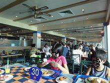 今日は、いよいよ、スーパースターヴァーゴに乗船します朝食を食べて11時に現地係員さんがお迎えに来てくれ、そのまま乗船ターミナルに直行まず荷物を預け、2階にある受付カウンターにて乗船手続きをします。あとはひたすら乗船できるのを待ちます。我が家は、エコノミークラスだったので、長蛇の列にて1時間以上待ちました。そしてようやく船内へまずは自分のお部屋探しから・・・お部屋は5階の5598号室エコノミークラスは5階からの乗船なので、楽にお部屋に行けると思ったら大間違いでした。自分の部屋番号のカードを渡されただけなので、迷路のような廊下をひたすら歩きます。ぐるっと周ってやっと見つけました。部屋に入るともう2時過ぎ。昼食をとろうと船内をウロウロするも、どこがどこなのか結局、迷子のまま時間だけが過ぎ2時45分からの日本人対象の説明会の時間になってしまいました。説明会では、船内での注意事項等を日本人スタッフの方がお話してくれます。今回の乗船は約2000名(内日本人は150名)との事。この大勢の中で、3日間も生活できるのか?と少し不安になってしまいました。説明会が終わったので、何とか食にありつこうと、12階ににあるメディタレニアンテラスへ行きました。ここではアフタヌーンティーをいただけます。サンドウッチ・クッキー・ケーキが並び好きなだけとって食べます。デッキ後方で外なので、少々蒸し暑いですが、海風を受けてなかなか爽快です。隣のテーブルに座っていたお綺麗な方より、息子と一緒に写真を撮りたいとリクエストされちゃっかりお膝の上に座らせてもらいパチリのんびりしているうちに船は出港マレーシアに向けてゆっくり動き出しました。夕方4時半からは最終日の晩餐会(ガラディナー)の予約へGO。混雑を覚悟していったものの、思いのほかすんなり番がまわってきました。我が家はベラビスタ(洋食)をリクエスト。夕食まで時間があるので、船内探検に。広すぎるので、地図とガイドブックを持ってひたすら歩きます。途中ゲームセンターがあったので、入ってみました。5S$でコインを10枚くれます。(約350円)一つのゲームが2枚から3枚で出来るので、安いゲーム代です。「虫キング」や「ボンバーマン」などもあり、子供たちは大喜びで遊んでました。本日の夕食はパビリオン(中華)へ部屋番号と人数を言うと、テーブル番号を書いた紙を渡されます。座って、渡されたメニューからドリンクオーダーをして待つこと数分。あっという間に中華でテーブルが埋め尽くされました。メニューはもう決まっていて勝手にでてくるので、とっても楽チン。ドリンク代のみ別料金です。スープ・焼き豚・魚の蒸し煮・青菜・エビ団子・春雨?サラダ・デザート思いのほか美味しく、日本人好みの優しい味付けです。ただ、ご飯(多分タイ米)はパサパサでイマイチだったかな。夕食後は、子供たちが楽しみにしているショーを見に行きました。8時からなので、早めに行って席取り。ちゃっかり一番前で楽しみました。説明会では「早めに来ないと席がなくなる場合もあります。」と言うので意気込んできましたがそれほどのことではありませんでした。10時からもあるので、分散されるのでしょう。この日は「ウェルカム アボード イントロダクションショー」踊りあり、歌あり、コメディーありの楽しいショーでした。中でも、中国雑技団ばりのアクロバットや体を曲げるパフォーマンスにはただただ拍手でした。さて明日は、マレーシアのペナン島へ上陸です。ちなみに、私たちが泊まったお部屋窓付きのお部屋ですが、やはり4人は狭い。両脇にある通常のベットと、手前のソファーベット。そして壁に付けられたベット。子供はNGとあるので私はこの壁付けベットで寝ましたが、何だか宙に浮いているみたいで怖い。夜中に起きて布団を全部下ろし、ベットとベットの真ん中の床に敷いて寝ました