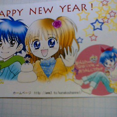 モンにこんな年賀状が届きました。 モンの大好きな「なないろミラクル」を描いている、かなき詩織さんからです。 ホームページに、「年賀状をもらってあげるという人はこちらから」と申し込みフォームがあったので、モンにナイショで出しました。 なんと!こちらが送ったメッセージのお返事が直筆で!宛名も直筆でした。 学年誌に連載中で、コミックスもすぐ売り切れで、お忙しいはずなのに、ありがとうございます。全部印刷ですませることもできるのに、一通一通、こうして心を込めて出して下さったんだろうな~と、親の私まで嬉しくなりました。 モンは何も知らなかったので驚くと同時に大喜びです。 黙って机の上に置いておいたのですが、発見するなり 「おかあさんっ!『なないるミラクル』の人に何か出したんっ?」 「なないろミラクルの人」って・・・。大好きなら作者の名前くらい覚えておこうよ(かなき先生、失礼な子ですみません)。 いただいた年賀状は、お正月に買ったに大事に挟んでいます。 なないろ・ミラクルの影響か、「読者モデルになりたい」とも言っております。 夢を見るのは自由ですけどね。言ってるだけじゃ、夢は夢のまま。 モデルに限らず、何をするにも努力は必要なのよ、モン。 冬休みの自由勉強、料理本のレシピ写すだけじゃだめだと思うよ、お母さんは。「実際に作ってみるとか、こうしたらもっとよくなると思うとか、工夫したら?」というと、「してるもん!」「へえ~、どう工夫したん?」「材料の所はピンクの銭で囲んで、作り方はオレンジにしたもん」そんな、胸張って言われても・・・5年生だよ? もうすぐ3学期、どうなることやら。