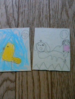 今年最初の育児サークルで作ったカルタです。読み札の言葉もう~のが考えてくれました。「ひよこ ぴーぴー なくばかり」 なくばかり、はどこで仕入れてきたのか?謎です。 もう一枚は「いぬが うんこした」 う~のの中で、この2枚が同等に扱われているのが、面白い。