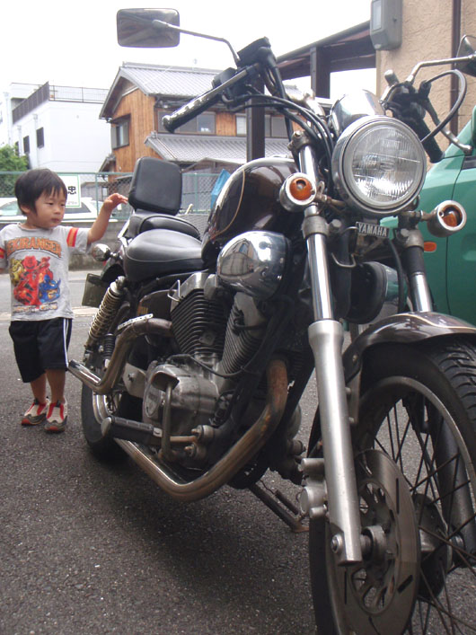 ↑ヤマハのXVビラーゴ250です・・・十九歳の学生の頃、中免(普通自動二輪免許でしたっけ?)を取得してから、初めて買ったバイクがコイツと同じビラーゴ250cc・・・。中古で買ったその一代目ビラーゴちゃんは7年ほど乗り続けましたあちこちガタがきていたちょうどその頃、ちゃあちゃんが(その頃は彼女でしたが・・・)中免を取り、新しいバイクを探していた時に出会ったのがコイツ↓さらに7年ほどお世話になりました!今では左右のウインカーは割れ、左のフロントホークからはオイルが漏れて、あちこちガタが来た上に、保険まで切れてしまいましたので、泣く泣くお別れすることにいたしました↑頑張ってまたがるんだ、るりっち!!↑変な顔・・・左手にはクッパ持ってます~↓涙、なみだのお別れです弟のモンキーも一緒に持って帰ってもらいましたさようなら~~、そしてありがと~~月並みですがいつまでも愛してるよ~!!今回のカメラもこちら!!お手軽&水遊び用のコンデジです!3m防水、1.5m耐衝撃性能ですよ!水に強い!アウトドア派の貴方に便利なデジカメです。 オリンパス μ850SW レモンイエロー【3m防水・1.5m耐衝撃性能】皆様、いつもいつもポチ~っとありがとうございます「ビラーゴよ、永遠に」と思っていただけたらついでにポチ~~ッとお願いします↓↓↓↓↓↓↓↓↑ひと~つだけぽっちんしてぇなぁ!