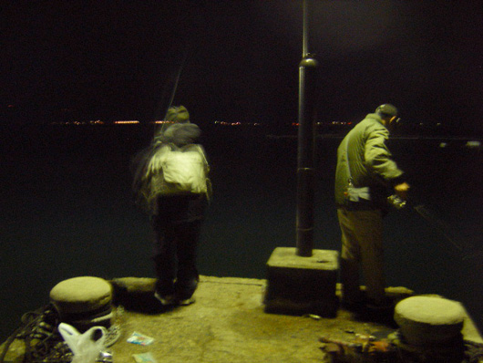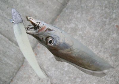 さて先日の釣りのお話ですが・・・。28日の深夜00:30に友人であるへっぽこ釣り道のムームー1091氏に迎えにきていただき西宮の武庫川へタチウオ釣りに・・・。そこから沖の一文字(防波堤みたいなもんです)へ渡船に乗って釣りに行くのです。出船は6時の予定でしたが、早めに行って仮眠をとる予定で出発・・・。1:30過ぎに到着し、明日の大漁を願って乾杯しました・・・。ムームー氏が迎えに来るまでに家ですでにビールを2本飲んでいましたが、車中でムームー氏が酎ハイを一本飲む間に発泡酒を3本空けるワタクシ(泣)酒呑み街道まっしぐらです・・・。そして午前3時前に就寝・・・。そして5時にふと目が覚めますと続々と車が増えてきました・・・。6時出船と思っていたのが5時半だったようです・・・。そして偶然、ムームー氏と同じく釣りブロガーのCAST CAST CASTのほーちんさんも、来られるということを聞いていましたので楽しみにしながら乗船し、そして合流&ご挨拶(笑)そしてまだ暗い中、準備を始め、ほーちんさんとそのご友人のT氏はさっそく実釣開始!ワタクシがチンタラしている間にムームー氏もスタート!!そしてさっそく釣っておられます・・・。僕も釣り始めましたが2連続でラインブレイク・・・!!その間に皆さんはイレ食い状態でございます・・・(泣)そしてワタクシやっともゲット!! そしてワタクシが3匹ぐらい釣り上げた頃、歴史は動いたのです!!それはほーちんさんの「タモ早く、早く!!」という言葉で始まったのですが・・・.三人掛かりで必死にタモ入れを行っている中、頑張って写真を撮ってみました・・・!が・・・、 揚げた瞬間、みんな揃って言った言葉が「で、でけ~~~~!」サゴシのお父さん(お母さん??)、サワラです・・・。 公式記録は91cmになってしまいましたが、これは93で間違いないですよ~~! どか~~~ン!! ずど~~~~ん!!ってかんじです~~!!それからしばらくしてワタクシも2匹ほど釣りましたが・・・。 ヤツに比べると・・・、 ひょろ~~~ん・・・。 にょろ~ん!! ぺろ~~~~ンって感じですついでに・・・、 ヘニャ~~~って感じです!↑写真のモデルは友人のムームー氏です・・・いやあ、それにしてもいまだにあのサワラを目の当たりにした興奮は忘れられませんムーム-1091氏、ほーちんさん、そのご友人のT氏、大変楽しい時間をありがとうございました~!!↓タチウオ釣りた~~い!とかサワラすげ~~!!と思っていただけたらポチ~っとお願いします~~!!ひと~つだけぽっちんしてぇなぁ!
