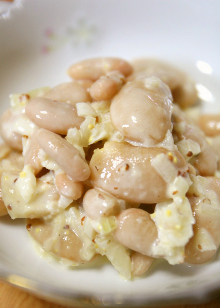普段はあまり料理に豆類を使わないワタクシ・・・先日せーちゃん家にお邪魔した時にご馳走になった、豆のマリネがすごく美味しかったので真似しようと思い、業務スーパーの缶詰のコーナーへ豆の水煮缶だけで5種類くらいあるんですね!びっくり作り方も、何の豆だったかも聞くのを忘れましたがとにかく作ってみました!材料 大粒白いんげんの水煮缶:一缶 いんげんの水煮缶:一缶 タマネギ:1/2個 A ・酢:50cc ・オリーブオイル:50cc ・マヨネーズ:大さじ2 ・粒マスタード:大さじ1 ・クレージーソルト(塩):適量 ・コショウ(粗挽き):適量1.タマネギを細かめのみじん切りにして、Aの材料とともにボールで混ぜ合わせます。2.ザルに水煮缶をあけて、よく水を切ったら、ボールに移し、ザックリと混ぜて、冷蔵庫で一時間ほど寝かしたら出来上がり。この分量で作るとちょっと大量かもしれませんが、なかなかさっぱりしていてシンプルでうまいですマスタードをしっかり利かせた方がうまいですね!他のいろんな豆でも作ってみる価値はありそうです・・・せーちゃんのママ、勝手にマネしてごめんね~!うまかったっす!地中海式ダイエットの基本、たんぱく質はイタリアンビーンズで。【ソルレオーネ】・白いんげん豆水煮缶地中海式ダイエットの基本、たんぱく質はイタリアンビーンズで。【ソルレオーネ】レッドキドニービーンズ豆のマリネ、うまそ~~!って思っていただけたら今日もポチ~~ッとお願いします!!↑ひと~つだけぽっちんしてぇなぁ!