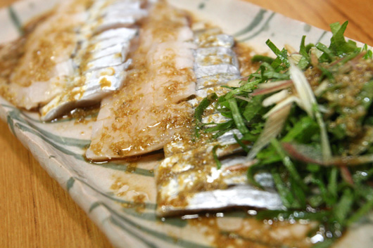 そこそこの釣果に終わった先日のタチウオ釣りですが・・・おいし~く頂いたのでご報告を・・・とりあえず定番のカルパッチョです。 今回はわさびドレッシングでいただきました!!薬味に大葉と茗荷をたっぷりきざんで・・・。そしてタチウオ6匹分の骨せんべい!! これはビールのつまみにサイコ~~先日友人からイタリア土産にいただいたシーズニングをフリフリしてしばらく置いてからカリッと揚げました!!最後にタチウオの冷製パスタ・・・。なぜにこの季節に冷製パスタかと言う質問はご遠慮ください・・・ ついでにレシピもどうぞ・・・1.タチウオを三枚におろした身に、クレージーソルトで下味をつけて、 小麦粉を付け、たっぷりのグレープシードオイル (又はオリーブオイル)でこんがりと焼きます・・・。2.パスタは細めのスパゲッティーニで・・・。 茹であがったらオイルとまたまたクレージーソルトを適量からめて。3.パスタをお皿に盛ったらまわりにベビーリーフとブロッコリースプラウトを散らします・・・。4.タチウオを一口サイズに切ってミニトマトと一緒に盛りつけます。5.最後にドレッシング(今回は酢、マヨネーズ、オイル、塩、 粗挽きコショウ)をかけて出来上がりです!!タチウオの代わりにアジやサンマでもいいでしょうし、ドレッシングもお好みで変えていただいたらいいと思います!結構、簡単ですので一度どうでしょうか・・・?自分で言うのもなんですがこれは相当うまかったですうまそうだな~っと思っていただいたらポチ~っとしていただけるでしょうか!!ひと~つだけぽっちんしてぇなぁ!