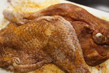 25日にちゃあちゃんの友人宅でクリスマスパーティーをしましたゆっき~パパにチキン料理を是非?と言ううれしいリクエストを頂いてましたので、2種類のチキンを作りました・・・チキンは前日からの仕込みです~****************************************************************まずは3年ほど前、知り合いのジャマイカ人に作ってもらったチキンの、ゆっき~風アレンジ(パクリ?)骨付きもも肉2本に、塩コショウ、オールスパイス、ターメリック、ガラムマサラ、カイエンペッパー(または一味)を適量ふって、もみ込みます・・・(ニンニクすりおろしを忘れましたネ)。 こちらは何度も作ってますのでほぼお得意料理です次は子供用に辛くないチキンです。同じく骨付きもも肉2本に、クレイジーソルトをまんべんなくフリフリ・・・。そして、セロリシードを全体にふりかけます。 それぞれをフリーザーパックに入れてマヨネーズを、それぞれ大さじ2杯程度・・・。そしてモミモミモミ~~~~!!マヨネーズのおかげでまろやか&とても味が馴染むんです・・・そのまま、冷蔵庫で1日置いて・・・。当日、友人宅でキッチンを借りて焼きました~!! ↑こちらはジャマイカ風の焼き上がり・・・****************************************************************そしてその他にサーモンとキノコのホイル焼き、ココナッツミルクのスープ、ベーコンとほうれん草のカルボナーラを作りました~ 評判はなかなかです・・・久しぶりに作ったカルボナーラが予想以上に好評でびっくり写真には写ってませんが・・・。僕の作った料理を、うまいうまいと完食するあなた達!!サイコ~に気持いいです!!クリスマスパーティ、楽しそ~、うまそ~~っと思っていただけたらポチ~ッとおねがいします~!ひと~つだけぽっちんしてぇなぁ!