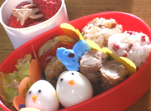 去年の秋にるりっちの保育園の遠足で、初めてお弁当を作ったんですが・・・この時は彩りも考えず、地味~~~なお弁当になってしまいました明らかに他の子供達のお弁当に負けていましたので負けず嫌いなワタクシはリベンジを狙ってました!そして先日作った第二作目がこちら・・・↓おにぎり二つと、豆腐ハンバーグ、肉巻ゴボウ、ウズラタマゴ、ツナキャベサラダです彩り、盛り付けなどまだまだ改良の余地がありますが、まずまずの出来ではないでしょうか・・・?それにしても・・・、深夜に、ウズラ卵に黒ごまとニンジンで顔を付けている三十路男・・・、かなり気持悪いですね・・・でも機会があればまた作りますよ~るりっちのお弁当、まあまあの出来じゃない~?と思っていただけたら、ついでにポチ~~ッとお願いします!!↑ひと~つだけぽっちんしてぇなぁ!