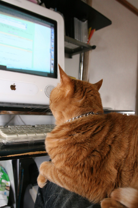 ちょっと~、みちこさん・・・ いくらパパのおヒザが好きやからって、そんなとこに座ったら皆さんのブログに、お邪魔出来ないじゃないですか~~ 「なによ~~~なんか文句あるかしら・・・?」って感じでしょうか・・・?どうも、彼女はタカビ~なのです・・・。態度が・・・。普段からです・・・みちこ、かわいい~~!!とか、猫もいいかも~!!って思っていただけたらポチ~っとよろしくです!!ひと~つだけぽっちんしてぇなぁ!
