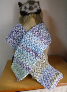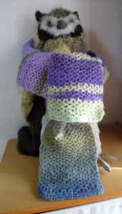 前回の残りでまたまたマフラー。今回は1本どりで編みました。思うようには色が出ないなあ・・・グラデーションは、難しい。