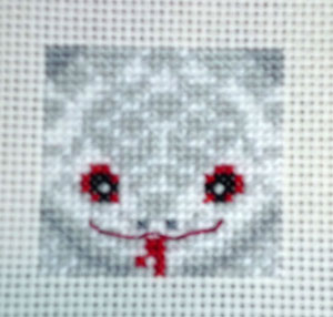 日本ヴォーグ社 クロスステッチで楽しむ干支とお正月飾りより、十二支集合の蛇さんを刺しました。年賀状用には小さかったのでボツになりました。