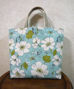 春なのでついついバッグを作ってみました。持ち手が気に入ってます。テープの上に、2本並べてジグザグミシンをかけてみました。端が浮くので紺色の部分にもミシンかけてます。ジグザグ部分の糸は透明にした方が良かったのかな?