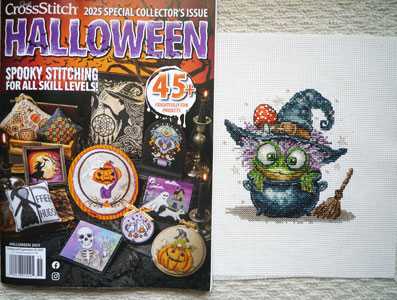毎年買う冊子よりWitch's Helperwを刺しました。小さなチャートなのに、意外と糸の種類が多かったです。バックスッチの下の柄が見えずあちこち忘れてて、もう大変でした。おかげで裏側が糸の大渋滞状態です。コピーした物で刺したんですが、糸の指定の見間違えが・・・ああ・・・イロイロ失敗が有りますが、もうOKとしましょう。