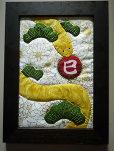 明けましておめでとうございます。本年もどうぞよろしくお願いいたします。こちらの蛇さんは岡山の、ここほれわんわんさんのキットです。本当ならキルティングが入るのですがちょっと無理・・・悲しいかな落としキルトだけでご勘弁になりました。今年は、キルティングが出来るようになりたいな・・・