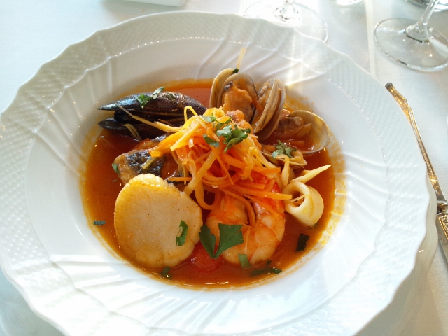 メインはお魚。追加料金でお肉にも変えられます。ここまでくると、もうお腹いっぱいです