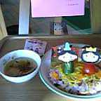 何と今日は年長さん手づくりのカレーライス。左側はおやつの蝶クッキー。お花のペーパー敷に止まってます。胴体はフィンガーチョコ、顔はシュークリームでした。