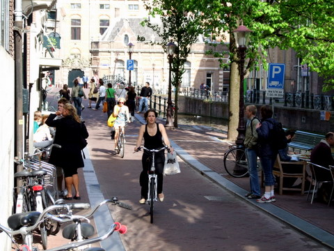 "アムスでいちばんステキな通りは?"こんなアンケートを私のとっている新聞がやった トップの栄誉に輝いたのはビール工場運河(Brouwersgracht) 17世紀に造られ家内工場的ビール工場が並んでいたのでこんな名がついたらしい(当時のビールは今の金色とかのとはちがう。アルコール度が低いどぶろくのようなものが主流で飲料水替わりに飲まれていた。飲料水は貴重でビールよりずっと値が高かったので。そのため当時の町にはたくさんのビール工場があった)その昔の倉庫が立ち並ぶ。でも木のよろい戸が窓についたそれらの倉庫は今では高級住宅に様変わりしている そして運河にはアムスの風物ボートハウスが浮かぶその通りのどこを取ってもこれこそアムステルダム、というひなびたたたずまい "一番ステキ"の栄誉が与えられても誰も文句はいいそうもない さっそく自転車を飛ばす 風は強いがお日様が溢れカフェや戸口ではビールをワインを傾ける人たちがいっぱいひなたぼっこの若者たちカメラを構える観光客も多い それにこのアンケート結果を一面トップに置いた新聞のスタッフ2,3人が運河沿いの家々に新聞をタダで配って歩いている(最近は無料新聞が4紙も出てしまって凌ぎを削り従来の有料新聞は生残りに懸命なんです) ついでに一番アグリーな通りに選ばれてしまったWiboutstraatにも行ってみた オランダの人たちのコンクリ嫌いがわかる さらについでに、ステキな通り2番手につけたNieuwendammerdijkにもこれは17世紀にアムスの港の対岸(北部)に土手を造ったが、その土手の上が細い通りになってその通りに沿って家が立ち並んだこれまたツウ好みのロケーション(観光客はめったに来ない) でも私だったらこんな通りをトップに選ぶのですが、いかがでしょうか?(アムスのはずれの市民の庭の裏手にある港北部のやはり古い土手)