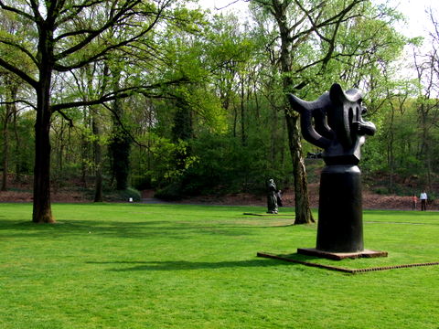 オランダで一番ステキな美術館といったら迷うことなくクローラー・ミュラー・ミュージアムと言おうゴッホの名作群はアムスのゴッホ美術館と並ぶし24 haのばかでかい彫刻の森もすばらしい特にこの季節 お花と緑の吹き出た中を散歩しながらロダンをブールデルをマイヨールをヘンリ・ムーアをヘップワースをデュビュッフェをそして現代作家の遊び心溢れる作品群を愛でるのはこの上ない快楽太陽のある日には芝生に寝そべり、そよ風に吹かれながらお昼寝なんてのも悪くない(わたしならマイヨールの「空気(あるいは空」という作品の脇での昼寝がいい) (マイヨールの空気) このミュージアムはアムスから東に100 kmほど行った森の中にあるその森をホーヘフェイリュー(フェ)という南北10 km東西5~6 km、面積5500 haの国立公園今は国立公園だが元々は大財閥クローラー・ミュラー夫妻のプライベートの狩猟の森だった奥さまへレーネはビジネスだけでなく美術・骨董に造詣が深くその方面のグル(ブレマー)をお抱えにして世界中でいろんなものを買い集めてきた特にゴッホ作品には早くから目をつけ、その死(1890年)から間もなく、そして20世紀初頭にかけて洗濯機を買うような値段で現在では不滅の名作と呼ばれるような作品を買いあさったどんなに高くてもせいぜい小型自動車の値段だった 現在278点のゴッホを持っている当美術館だが、その中には「星空のカフェ」、「アルルの跳ね橋」、「郵便配達夫」や「糸杉」なんて超人気者もあるそんな数々が洗濯機やテレビの値段だったのだから目利きはちがう ヘレーネさんはそのコレクションを展示する美術館をその森の中につくるのが夢だったのだが1930年代の経済恐慌の余波でそれが不可能になる維持自体ができなくなっていたのかもしれないがご夫妻、そこで思い切ったことをしたコレクションのためのミュージアムを作ってくれれば、その森とコレクションを国にプレゼントするよ、と言い放ったのだ国がそんなおいしい話を蹴るわけがない1938年に予定より小さな建物が出来上がり初代館長にヘレーネさんが就任喜び勇んだでもそれもつかの間翌年彼女はころりと亡くなってしまうそれを悲しんだだんなのアントンさんも1941年に後を追うように亡くなってしまった(何かフィンセントとテオのゴッホ兄弟の運命的な死まで連想させる) でもそんなことはどうでもいいとにかく気持ちいいのですこのミュージアムオランダに来たら絶対行ってみてくださいね あっ、そうそう森の中には勝手に乗り回していい白い自転車がたくさん置かれているその自転車でルンルンと森の中をサイクリングするのも夢みたいに楽しい(足ブレーキなのでちょっと稽古が必要ですが・・・)