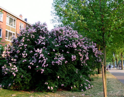 今日も晴れ(でも少し雲が出始めた)夕方7時半になってやっと外に出る雑木林を抜けながら若葉の草花の匂いを楽しみひとつ北の大通りを通りへその自転車道を行くと高さ4~5mの横にもフワッと5~6m膨れた潅木にきれいな薄いピンクの花が咲き乱れている おまけに甘いかぐわしい匂い 自転車を停めて花に近づく 名も知らぬ花 名を知っていたらどんなにスッキリするだろうおいさくら君!とか、アイリスさん!とか呼びかけられたら気持ちいいだろうにヒトと話すにも(花の)名を知らないとちっともストレートに分かり合えないのだからだの中がねじれてくる・・・・ そして100 mも行くとまたもっと小さな白い花 この花の名も知らない でもまあ、いいグチはこぼすまい庭に到着まず、潅木の下のたまごを見に行く。やはり親は帰ってきていない近づいて数えてみると相変わらず8個ヤケに存在感のある卵を見ながらため息が出るどうしろというんだ。放置するのも気になるし、処分するのも気が引けるこれだけ放置されたら中身が生きているはずはないのだろうが・・・・困ったものだ皆が夕食を済ませてくつろぎモードに入るころおもむろに働き出すのが私昨日3分の1やった大鋏での芝刈り(といっても雑草が大勢)を再開また3分の1ほどジャキジャキと鋏で刈った伸びすぎて芝刈り機ではダメだったので仕方なく大鋏でやり始めたのだ鍛えてない体は正直で5分続けて3分休み、といったペースそのうち2分続けて3分休みといったペースに暗くなりかけた頃大休憩その時間を使って、出始めたぶどうの葉に巣食う虫のついた葉を片っ端から摘んで捨てる葉の裏に巣ぐい表にボコボコとイボみたいのがたくさんできるのだだんだん暗くなってくるが意地になってまた芝を刈る胃がムカついてくるほどがんばったそれなのにたったの3分の1おまけに頭がかゆくてかゆくてどうも地ダニみたいのがいるようだ(いまだ正体は確認できないのだが・・・)この時期芝刈りとか雑草抜きをやっていると必ずやられる今日は頭にタオルを巻いたのだが、昨日は何も巻かなかったので髪に入られていっぱい刺されてしまったのだ刺されてすぐもかゆいが1日してからぶくぶくと膨れてきてずっと痛痒くなるそれが2,3週間続くヘタをすると化膿してなお痛痒くなる今日後頭部と首の後ろがボコボコなのに気づいたヘマをしたもんだ考えればこうなることは予想できたはずなのに・・・・でもまあいい庭での肉体労働は精神に充足感を与えてくれるのだから手を洗い着替えをして、すっかり暮れてしまった夜10時、家路につく家まで1.5 kmそのうち最後の1 kmは菩提樹の並木が続く葉がここ数日でこんもりとした感じに生えてきたその下を行くと星が輝いているのにハラハラと霧雨みたいのが降っているのに気づく自転車道をよく見ると雨が降ってきたようにポツポツと濡れている 停まって根元のこんもりとした葉の塊(菩提樹というのは根元や幹に葉がいっぱい出る近づくと、葉の表が濡れてみんなテカテカと光っている葉から樹液みたいなのがにじんでそれが雨のように落ちているようだ歩くと靴裏が敷石にペリペリと張り付いて軽い音がする車を菩提樹の下に置くとべったりと汚れるのは知っていたでもこれほど雨みたいに降っているとは今まで気づかなかった小さな発見 しかし神さまは何のためにそんな雨を菩提樹の葉っぱから降らすようにしてくれたんだろう・・・何か意味があるのだろうか・・・?ふと脇を見るとゴールデンシャワー(キンクサリ)が黄色く咲き始めている
