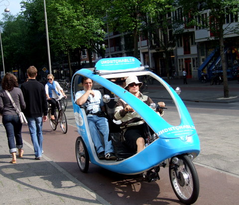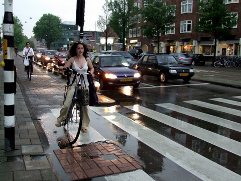 雲行きがあやしかったのだが自転車で待ち合わせ場所へ。何とかもってくれたお天気も渡し舟で終了。バタバタと大粒の雨が落ちてきたところで舟に乗る。たかが2分の渡しなのに対岸のアムス中央駅裏に着いてみれば、急に風も出て、洪水のような水が天から落ちてきている。雷鳴。トコロテンのように洪水の中に押し出される。みんなすごい形相をして走るは、身をかがめて首をすくめるは、赤信号を待ちきれないヘソ出しネーチャンはイライラの足踏み。駅をくぐって前に出れば、思い思いにトラムにバスに目的地に突っ走る人々・・・。こちらは駅前の欄干に違法駐輪してトラムの停車場の屋根の下に飛び込む。ホッとして周りを見回すと、みんなこの世のものでない形相をしてあっちゃこっちゃ突っ走っている。自分も含めて私たちってとっても簡単にすごい形相になるしアワを食って突っ走る。今年はじめての本格的な雷雨に木の葉のように弄ばれる私たち。この世のボスはお前たちじゃないんだよ、と笑われているようだ。急な土砂降りだけでこんなにアタフタ。津波だったら・・・地震だったら・・・巨大隕石が落ちて世界が暗くなったら・・・オレはどんな形相になるのだろうか・・・・