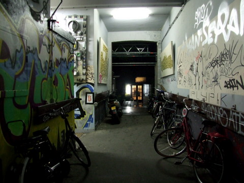 さわらちゃんの誕生日パーティーはまだ終わったわけではない雨のなか車でアングラ劇場へ 9時からのはずのパフォーマンスカフェでいつまで待っても何も始まる気配がない スパスパパーっと大きな煙が口から出るそんなの別に珍しくもないアムスだが2人の若者の間にちんちくりんのおばあちゃんが元気にジョイントしてるのはめずらしい Qちゃんがミトトって名前だよ、あのおばあちゃんと教えてくれた ビール1本1.2ユーロ、コーヒー1杯0.8ユーロ20年まえにタイムスリップしたようななつかしさ 何だか正体不明の若者たちがたむろしてるでもおじいちゃんだってiBookに没頭 ミトトばあちゃんだって常連みたいだ こんなロフトでくつろぐ2人もいたり・・・ トイレに行けばこんな具合 さてさていよいよケーキの上にたくさんのロウソクが灯るそれを吹き消すさわらちゃん ミトトばあちゃんもiBookじいちゃんもケーキめがけて真っ先に さわらちゃんの誕生日とはあんまり関係もない2人のはずだが・・・ いやいやここに居合わせりゃ、そりゃもうみんな兄弟ってこと アムス片隅の小さな理想郷に栄光あれ! ちょっと早めに暇を告げて半開きの門を出る 振り返ると新聞の切り抜きが雨に濡れて光ってる 見出しには「サブカルチャーなしではカルチャーは存在できない」 とあった