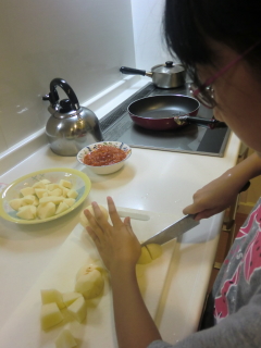 今日は、初の夕飯作りデ~でした。レッスンが17時30分に終わり、2階へ上がると・・・・・夕飯が殆ど出来ていました。使った調理器具も全て洗い終わり、シンクはピカピカ。オ~~~!素晴らしい!!!傍でサポートしようと思っていましが、結局殆ど何もせず。粉ふき芋はきちんと粉ふいてるし、塩味も付いてて美味!料理の手伝いは小さい頃からしてもらってましたが、子供はきちんと見ているものですね。ご飯もお鍋できちんと炊け、お味噌汁もお味噌の濃さも良かったし、サイコロステーキは時間差でニンニクと焼き、バター醤油味で、美味しく頂きました~~明日はもう一人が冷やし中華に挑戦し、作ってくれます18時30分までレッスンなので、本当に助かってしまいます。さくらんぼ達よ、ありがとう~~~~素材・ドットヒバナ/レースCandied design・*kico*