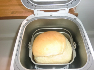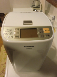 約2時間かけて焼けたパンは以外にも(?)大成功 パナソニックはドライイーストも自動投入なので本当に楽です!(違うメーカーのものはタイミングを見てイーストを投入しなくてはいけないものもあるらしいです)焼き上がりは・・・・・やけどしそうなくらいの熱々ですカットしてみましたお~~~~パンになってる~~~熱すぎたので、上手く切れず断面が美しくありません強力粉、バター、スキムミルク、お砂糖、お塩、ドライイースト、水しか入っていない添加物ゼロの安心パンです。抹茶を入れたりココアを入れたり、レーズンやゴマ、いろいろなバリエーションで楽しめそうです我が家の一番の働き者になりそうです素材・ぺけぽんの部屋 design・マエたん♪