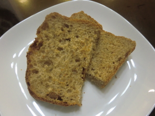 昨日、今日は2日連続でぶどうパンを焼きました。富澤商店で、レーズンを買ってきて・・・・何種類かありますが、柔らかくて他のものに比べ甘みがある、というのでこれを買ってみました。 レーズンを65g入れましたが、問題なくふっくら!カットすると中身はこんな感じです。時間がなくて、食べる直前のパンを撮ったので、絵的には美しくありませんが強力粉200グラム、薄力粉50グラム、黒糖25g、塩小さじ3分の2、バター20グラム、牛乳180ml、レーズン65g、ドライイースト小さじ1をバンバン機械に入れ、焼き上がり6時でスイッチオン!朝、香ばしい匂いが家中に広がっておりましたいつもは三温糖を使っていますが、黒糖を入れるとミネラルはたっぷりだし、優しい甘さになります。レシピではぶどうは60gですが、可能な限りぶどうをセットしちゃいました。蓋は多少ゆがんでいましたがぶどうが多いほうが好きなもので・・・・ぶどうパン・・・・しばらくハマりそうです・・・・素材・フリー素材桔梗屋 design・*kico*