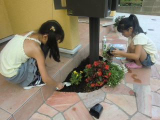 玄関前のお花がかなりくたびれてきたので、今日はさくらんぼ達と島忠へ。色々なお花があり、気持ちはルンルンになりますが、どのお花が暑さに強く、虫に強く、枯れにくいか、全く分からず、でも店員さんは忙しそうで、さくらんぼ達となんとなく見た目で選んできちゃいました。 ブラブラとお店の中を見ていると、野菜の種コーナーもあり、全くの初心者でありながら「こんなの出来たら楽しいね~~」と3人で話しながら軽いノリで、秋きゅうりの種、石灰、元肥、追肥の肥料、などなど、衝動買いをしてしまいました。閉めて2000円弱。高いきゅうりになってしまいました(笑)収穫できれば・・・の話ですが。買うだけ買って、土を耕したり石灰を混ぜたり、は結局ジジに全てやってもらい、見ていただけですがっ「なんで株で買ってこないの~~???種から作るんじゃいつ収穫できるか気が遠くなるよ」と言われてしまいましたが、なにせ初心者。種なら発芽から見れるしと、軽い気持ちで買っちゃいましたがちょっと心配になってきました。発芽から収穫までブログネタが更に増えたかも 素材・ぺけぽんの部屋 design・*kico*