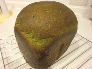 今朝は抹茶パンを焼きました。6時30分に焼き上がりのタイマーをかけ焼き上がったのは6時30分ジャスト!当たり前と言えば当たり前ですが正確さにちょっと感動してしまいました。いつも6時に起きるのですが、目覚める少し前からパン屋さんから匂うあのいい香りが寝室まで届きあ~~~いい香り・・・・と幸せな気持ちで目覚めました相当いい香りがしてたのか、バニラはベットから顔を出してクンクン抹茶とホワイトチョコが入ってます。パンの裏側はこんな感じ。取りだす時、こねたりする羽は、スポッと抜けちゃいます。 レシピ通り焼いたのですが、ちょっとさくらんぼ達には苦味を感じたようです。次回は半量にしてみよう・・・・でも、とっても鮮やかな緑で、私的には大人のパン、って言う感じでホワッと柔らかく、美味しかった~~~バターが入るからカロリーが気になりましたが一斤で10グラムくらいなので、たいした分量でなく、ちょっと安心ちなみに・・・・・ホワイトチョコは溶けてしまいましたココアを入れて、チョコ風味も喜ぶかも 象印とパナソニックで悩みましたがパナソニックは全て自動投入なので、本当に良かったです。ともかく寝ている間に全てが終わっている、というのは最高です。素材・Fiore design・*kico*