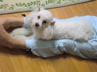 発表会まであと2日・・・・あっという間です。今年はバイオリンの生徒さんも出るので例年とは少し違った発表会になりそうです学生時代、副科としてバイオリンをかじった経験があるのでバイオリンの難しさはよ~~~く知っています。みんな一生懸命練習してきたので、どうか無事成果を発揮できますように・・・・・舞台袖で陰ながら応援するしかありませんが ともかくみんなが楽しく演奏してくれることを祈るばかりです・・・・ ここ最近はどこにも出掛ける余裕もなく、ひたすら練習とレッスンの日々なので今日もまたまたバニラの話・・・・・夜、家族でテレビなどを見ているとバニラはさくらんぼの足の間にスポッとはまり、リラックスしてます眠そうな顔をしてこちらをジ~~~すぐにコテンと眠ってしまいます。さくらんぼの傍以外にお気に入りの場所は・・・・ソファの下ですなにもこんな狭いところにいなくてもいいのに床もひんやりしているし、狭いところが落ち着くのでしょうか。おもしろいバニラです素材・ドットヒバナ/レースCandied design・*kico*