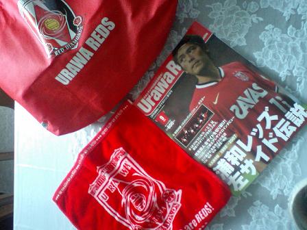 病院への通院セットの一部(レッズマークエコバック&ハンドタオル&レッズマガジン)